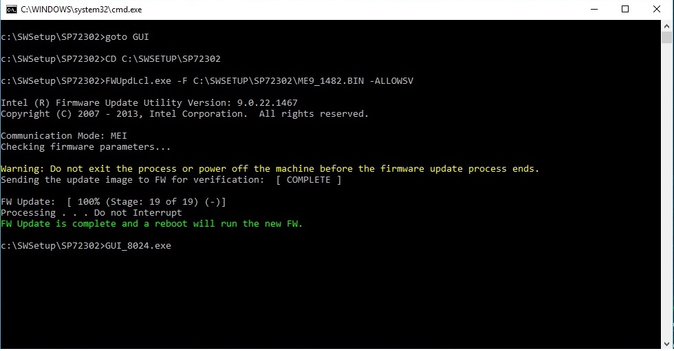 FWUpdLcl.exe -F C:\SWSETUP\SP72302\ME9_1482.BIN -ALLOWSV