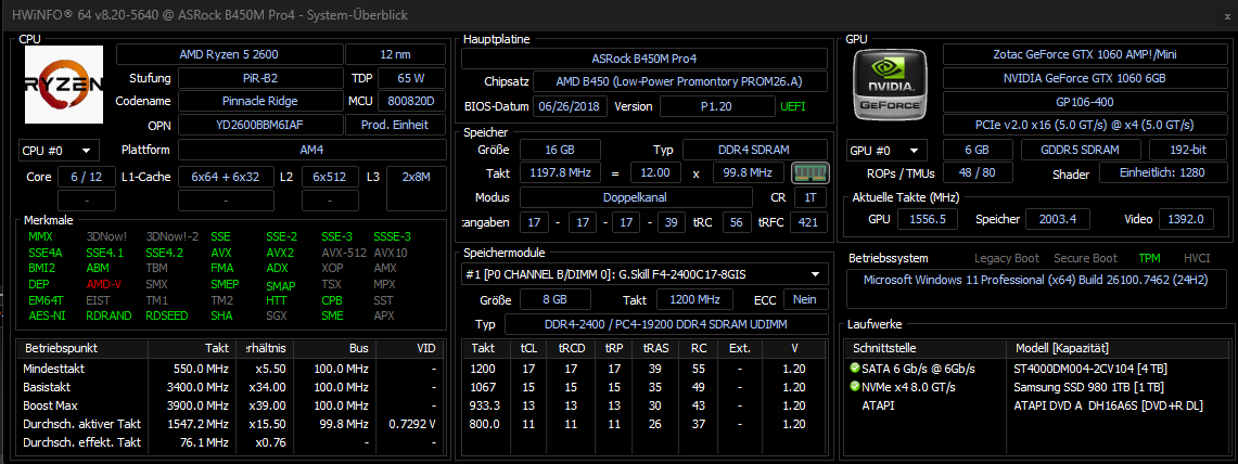 Meine aktuelle CPU ist ein Ryzen 5 2600 auf einem