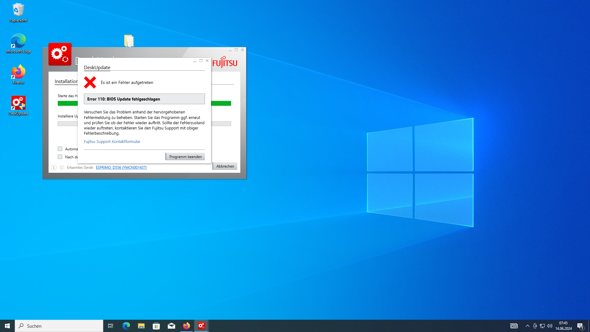 Es geht immer noch um das Fujitsu Esprimo D556 E94+ PPC (D3420), wollte ein Bios Update machen, mit den DeskUpdate, bricht mit Error 110 ab, jetzt dir frage, ist es überhaupt möglich? Wäre es möglich mit Jumper setzen? Manuel geht auch nicht, bricht mit der fehlermeldung unten ab, egal ob ich am ende D1x oder C1x nehme.