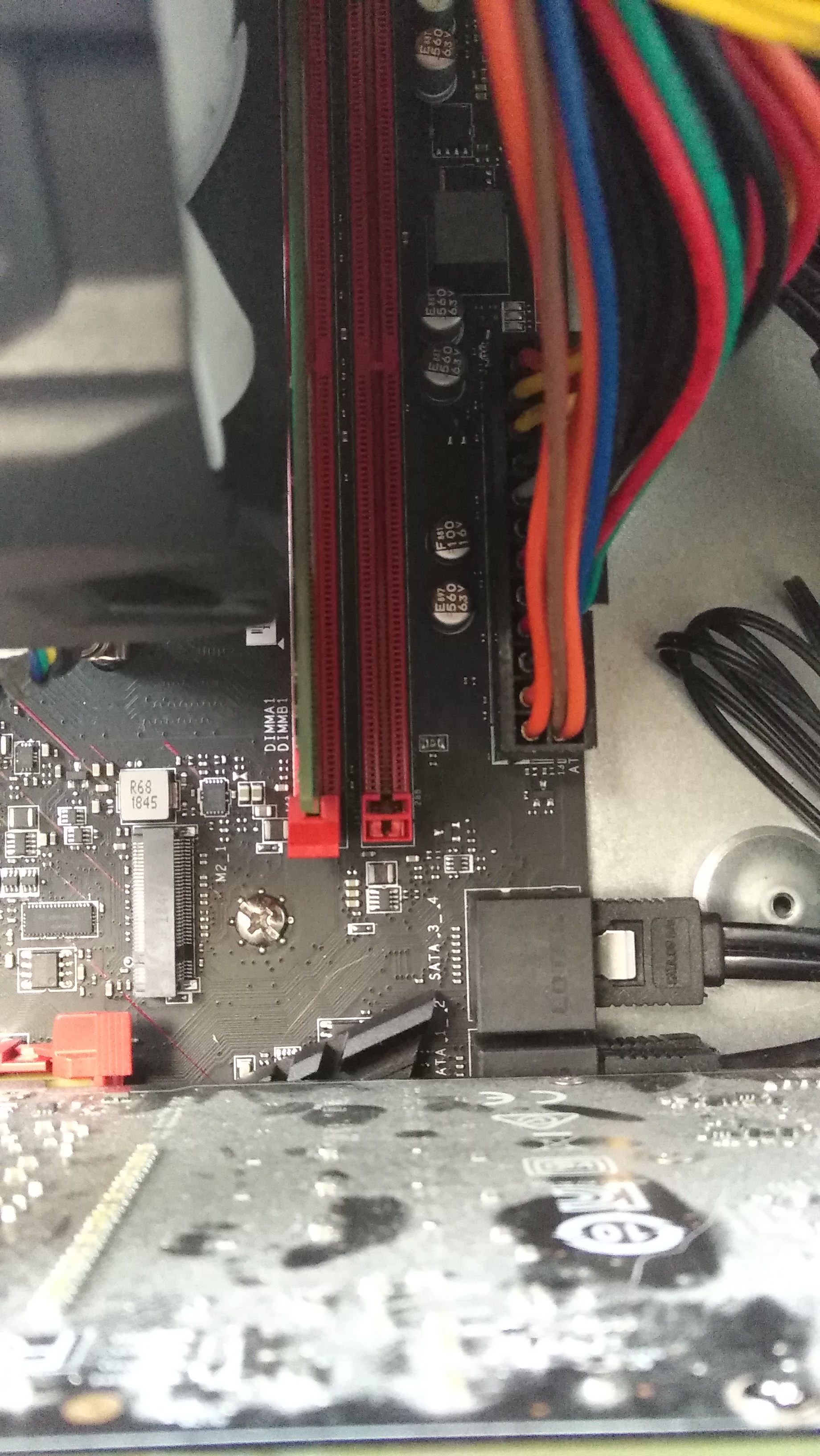 Bzw. ein Problem hatte ich beim RAM... Ich wollte die RAM Riegel wie es in der Anleitung und für mich bisher bekannt auf beiden Seiten öffnen. Dabei ist auf der linken Seite (zum Boden hin) eine spitze abgebrochen. War aber alles nur aus plastik und sieht nicht bedeutend aus. Habe eigentlich nicht feste gedrückt aber war dann halt ab. Habe es dann einfach wieder drauf gesteckt und dann herausgefunden dass man bei dem Mainboard scheinbar nur auf einer Seite den RAM entriegeln kann...