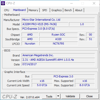 - Mainboard: MSI A320M PRO-VD/S V1.0 als Hyrican Version mit BIOS V2.31