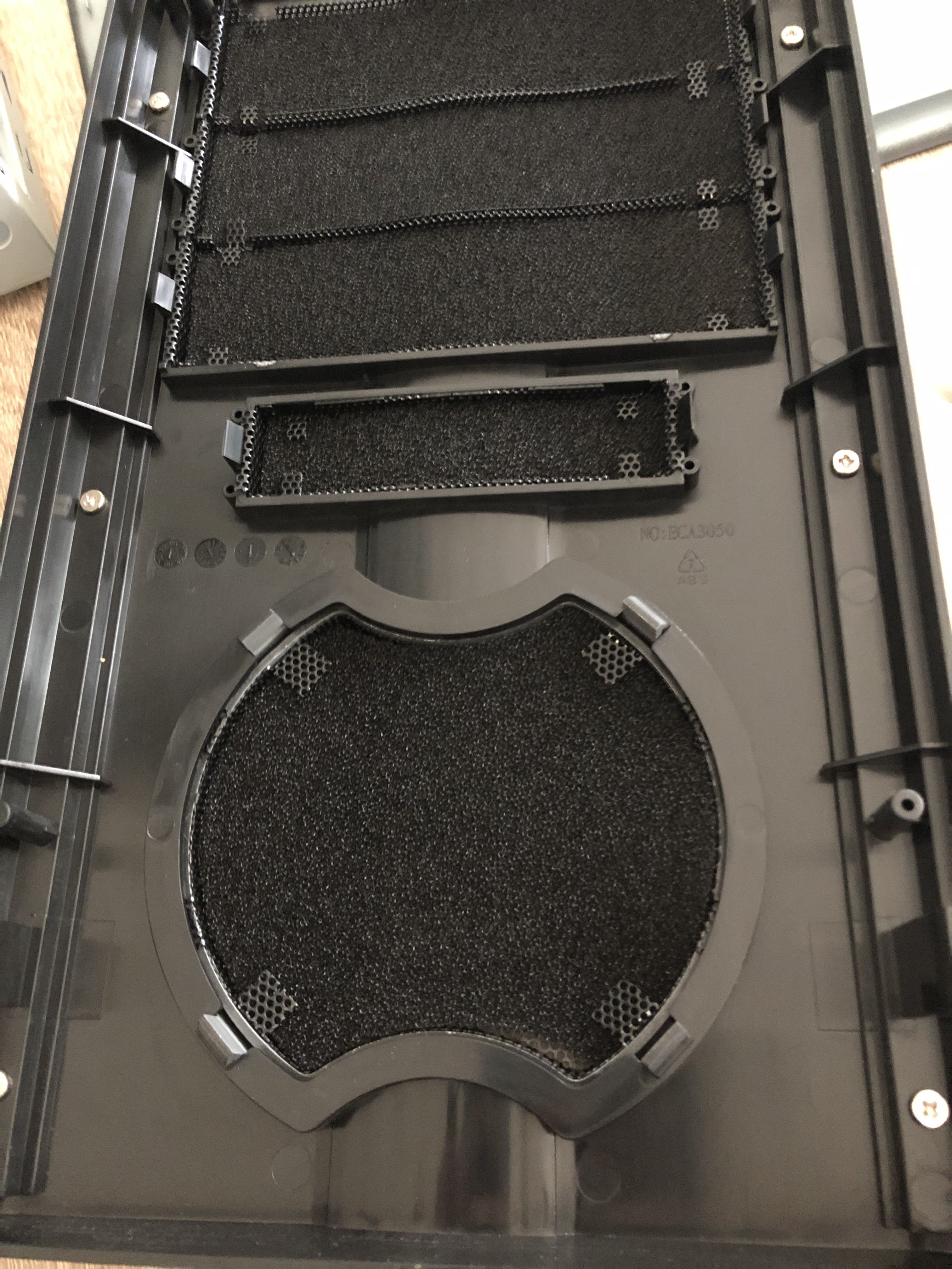 Glaub müsste ein Filter sein in der Gehäuseabdeckung Front/unten, wo der Lüfter später sitzt.