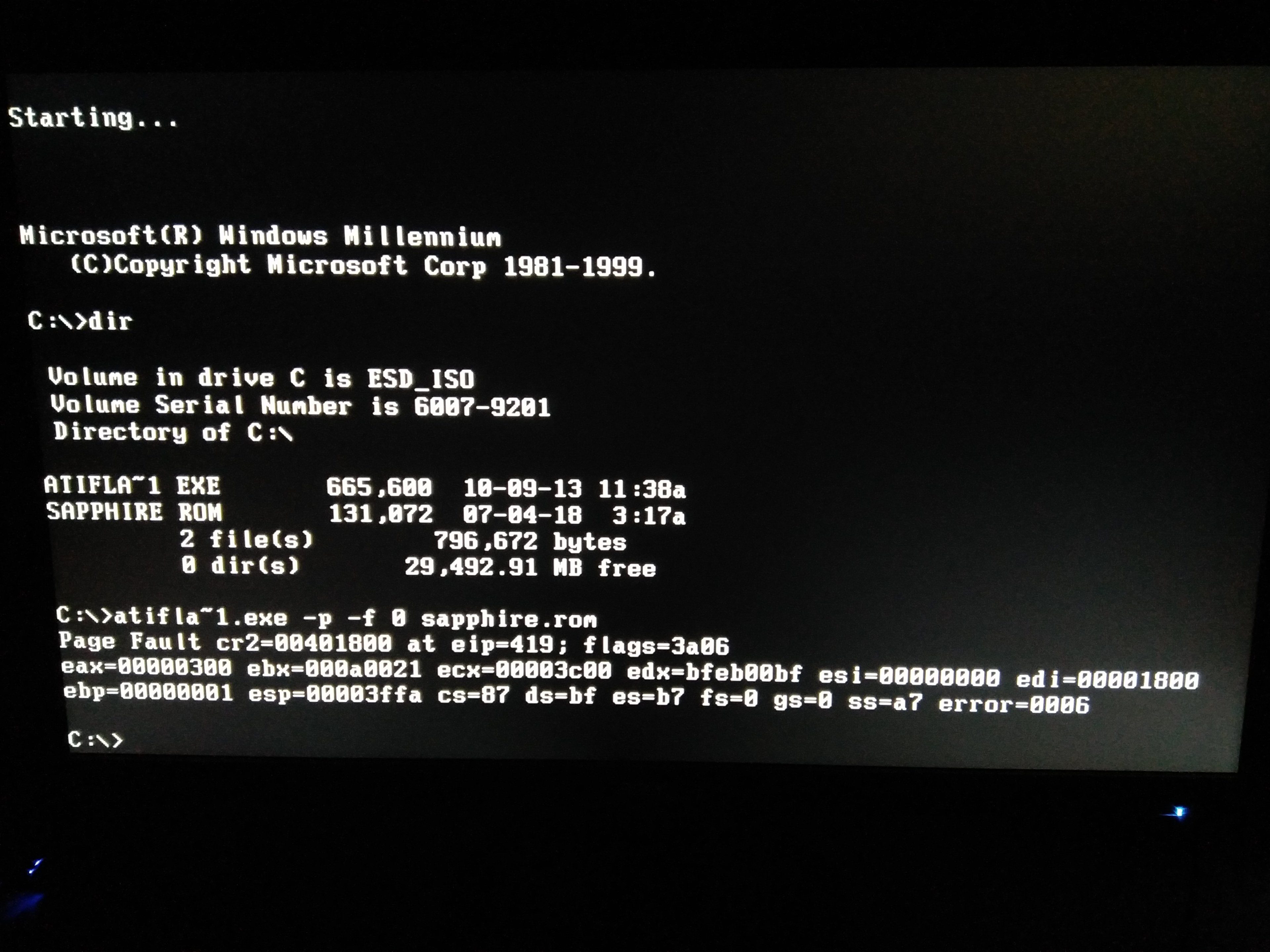Habe mich noch auf paar anderen Seiten informiert und der Befehl "atifla~1.exe -p -f 0 sapphire.rom" ais auf jeder Seite anders der eine schreibt mit ".exe" der andere mit "atiflash" und so weiter und sofort. Jedoch klappt keins nur das erste, dass hat funktioniert bzw. ist das einziege wo ein error kommt. Bei den anderen kommt einfach das es ein falscher Befehl ist.