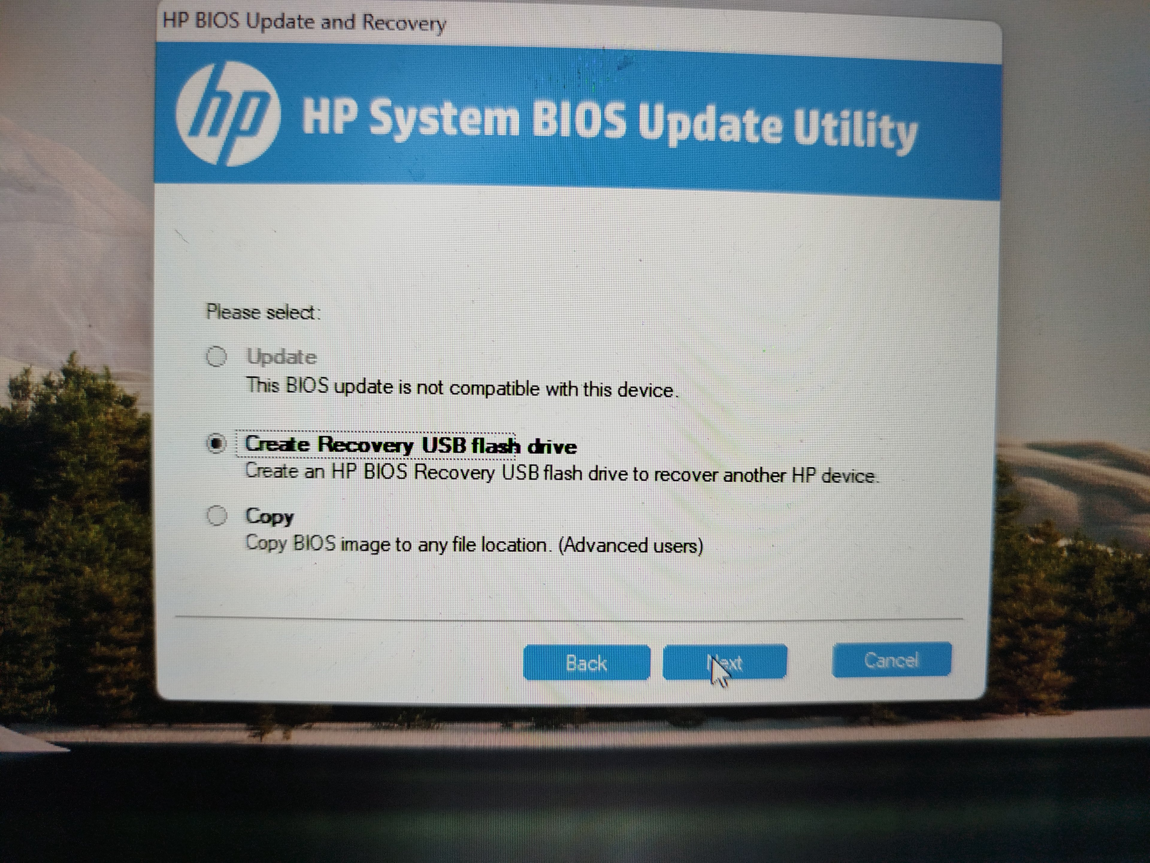 Daher bietet das Tool an einen USB Stick zu erstellen, oder das BIOS lokal abzuspeichern um damit "ein anderes HP Gerät" upzudaten.