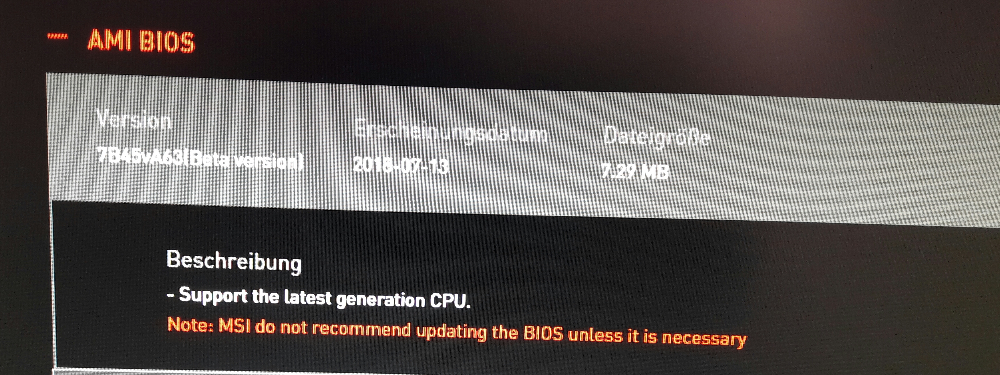 Sofern nicht nötig, würde ich für den Everyday Gebrauch von Beta-Versionen generell eher absehen. Die heißen ja nicht umsonst BETA VersionenMabara92 schrieb:MSI Z370 Pro Carbon mit der vorletzten Bios Version.