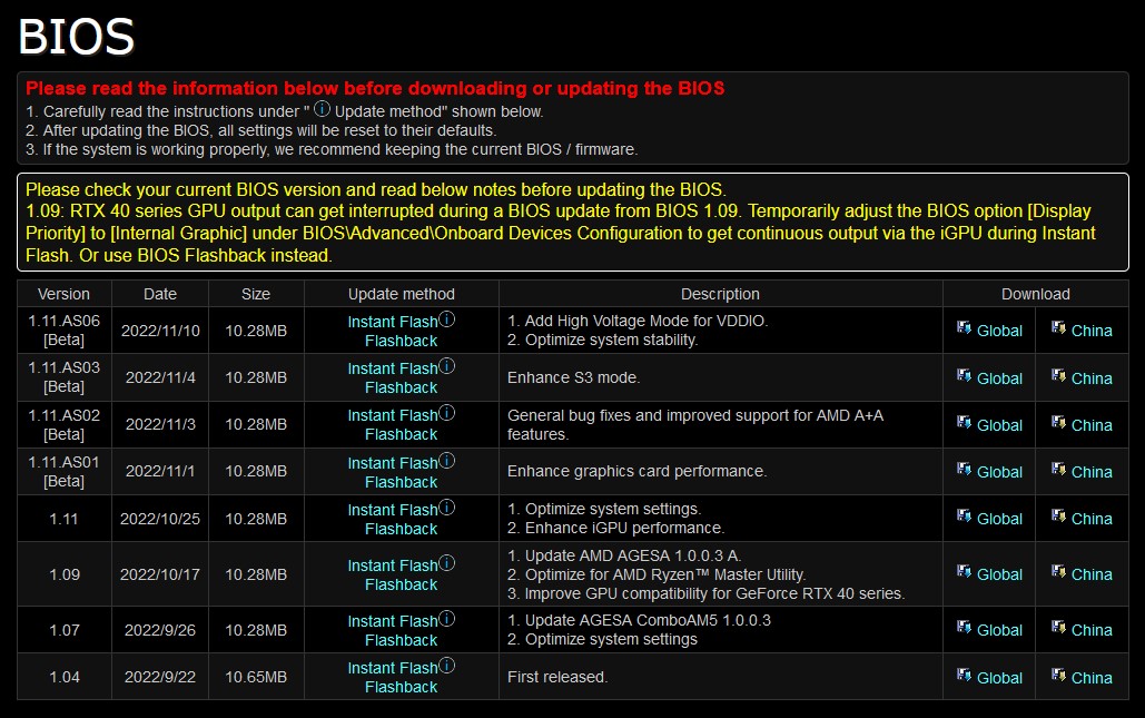 das bios ist nur bei MSI final, bei asrock und gigabyte sind diese als Betas gekennzeichnet, laut artikelSVΞN schrieb:Sie bieten nur alle ein BIOS mit AGESA ComboAM5PI 1.0.0.4 an, welches Final ist und erstmals die Non-X-Modelle unterstützt.