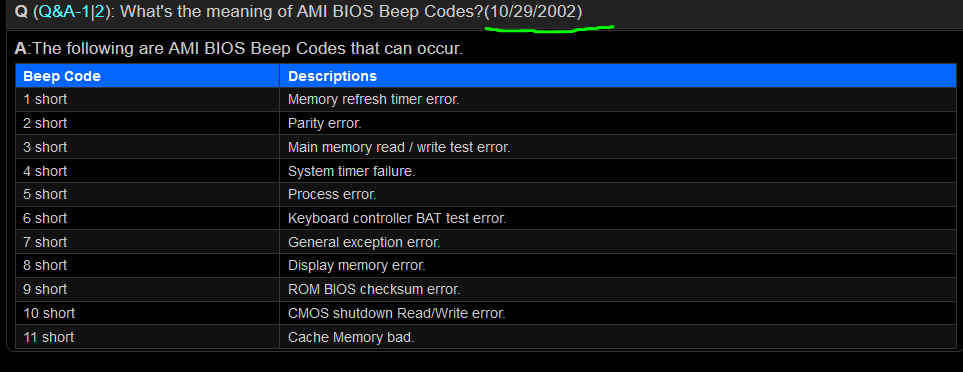 Deine verlinkten Beep Codes sind 20 Jahre alt (1. Bild).