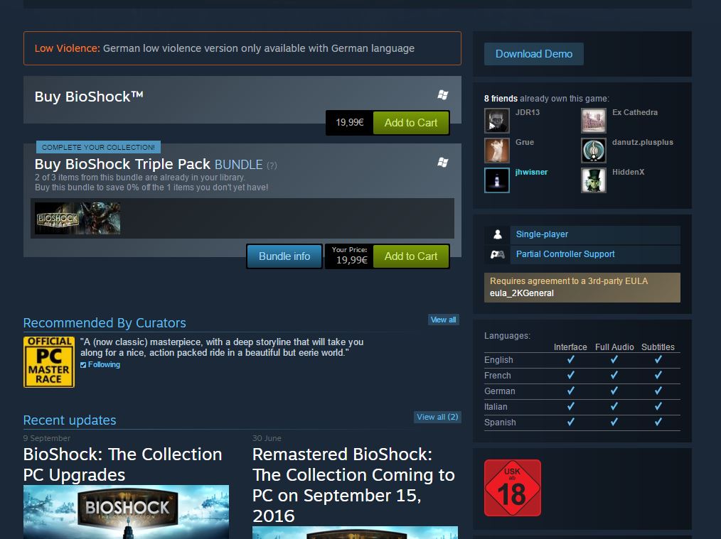 Also die ursprüngliche Cut-Version von BioShock auf Steam war glaube ich nur in der deutschen Sprachversion zu bekommen, aber es kann sein, dass 2K das im Vorfeld der Remastered-Geschichte jetzt geändert haben.