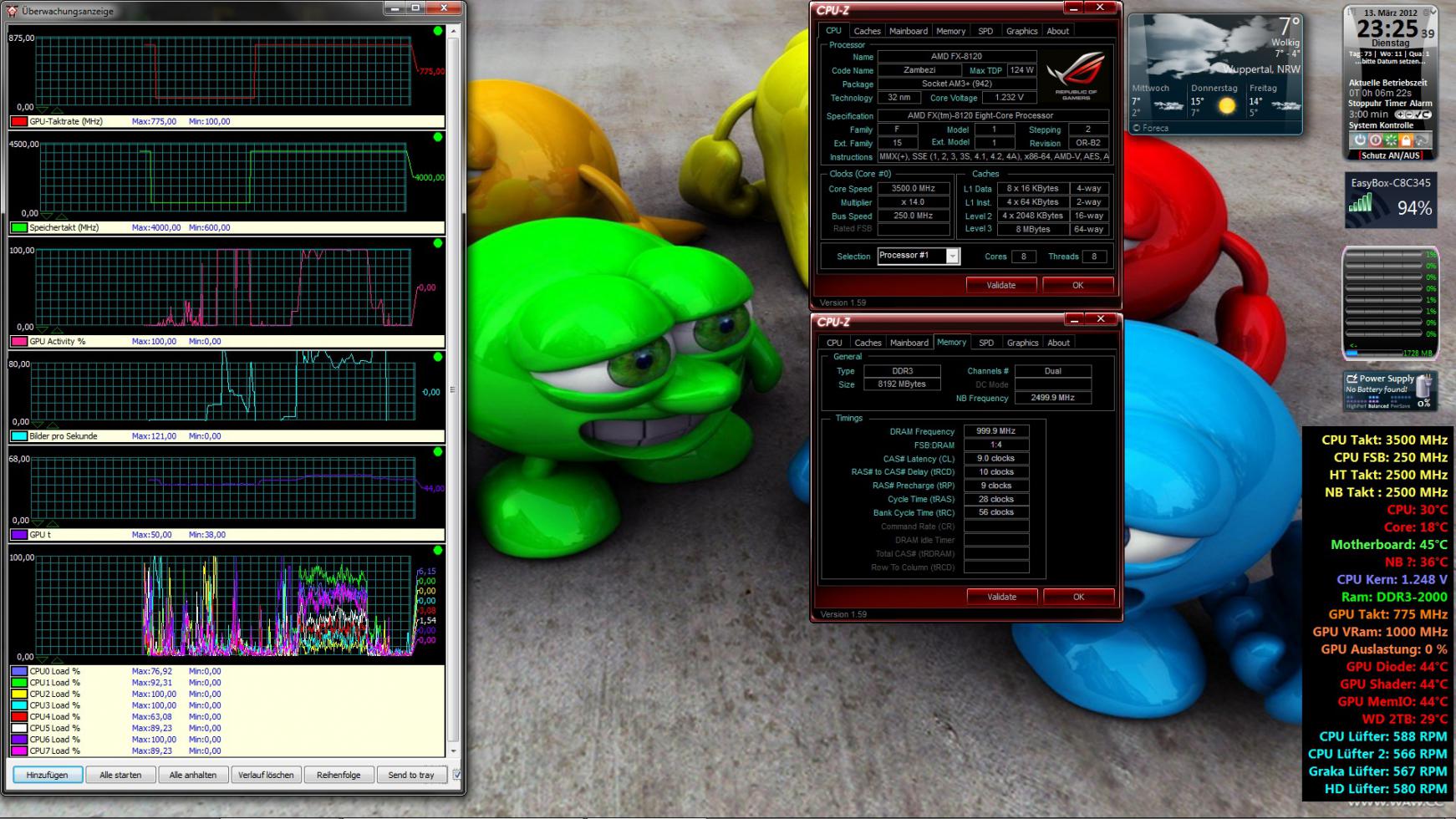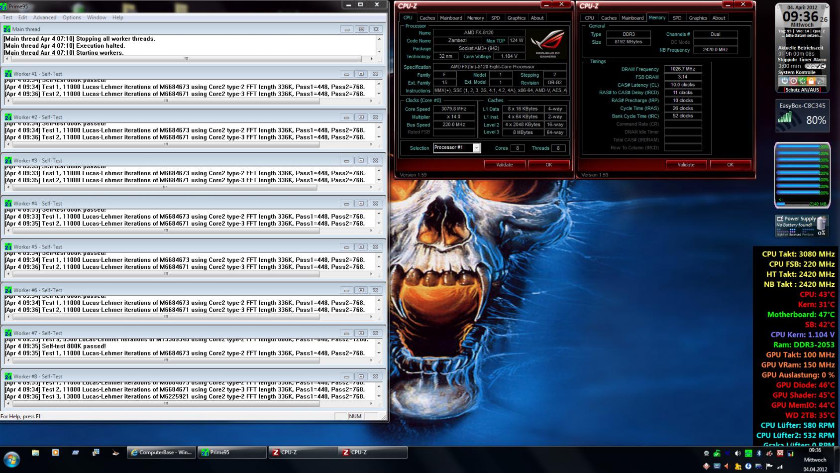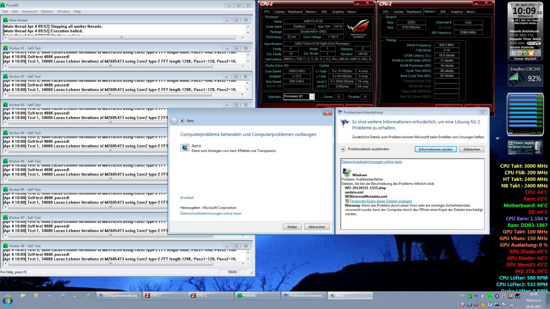 Versucht man dies aber NUR über den NB Multiplikator von 12 (Spannungen....blieben gleich),so bekommt man Grafikkartenfehler und Aero(Siehe Leistenfarbe) funktioniert nicht mehr.Bild2