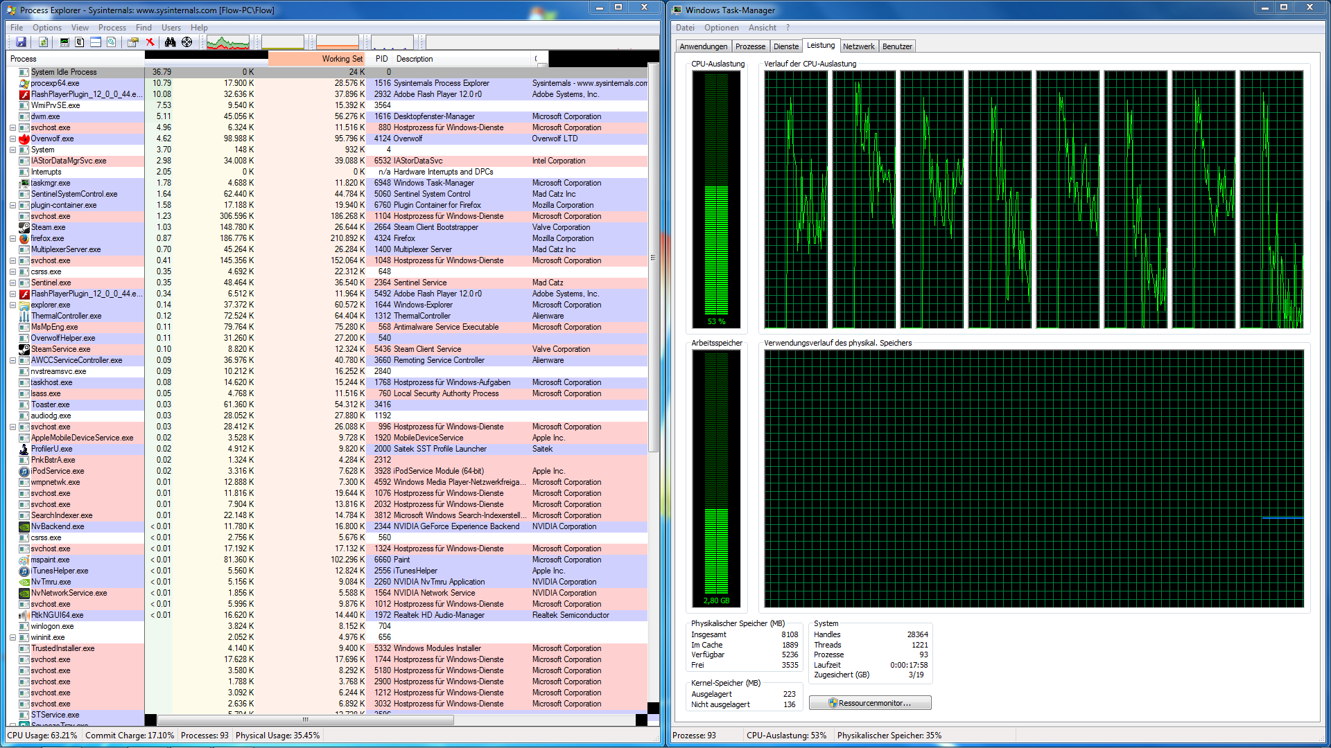 Heute allerdings habe ich durch Zufall einen Blick auf die CPU - Auslastung direkt nach dem Start des PC's geworfen und bemerkt, dass diese EXTREM hoch ist! Weiter dreht der vorhin beschriebe Lüfter nun permanent auf Hochturen!