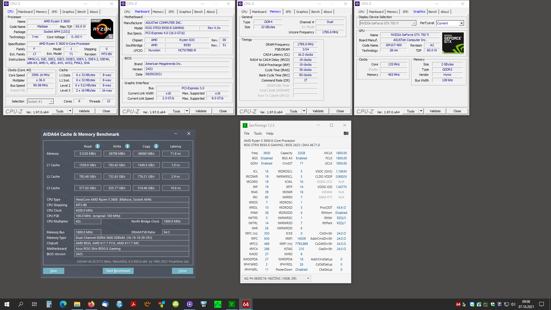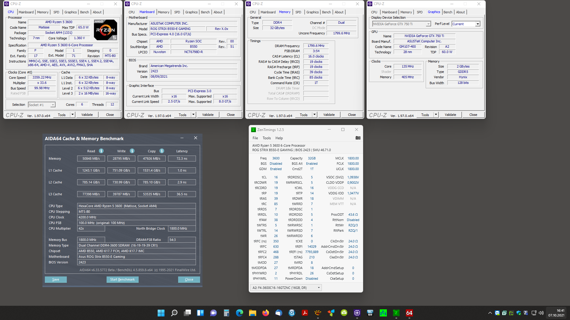 Anzeigefehler seitens AIDA64..stbufraba schrieb:Hier die Werte meines Systems (Ryzen 5 3600 auf B550-E) unter Windows 10 Pro bzw. Windows 11 Pro.