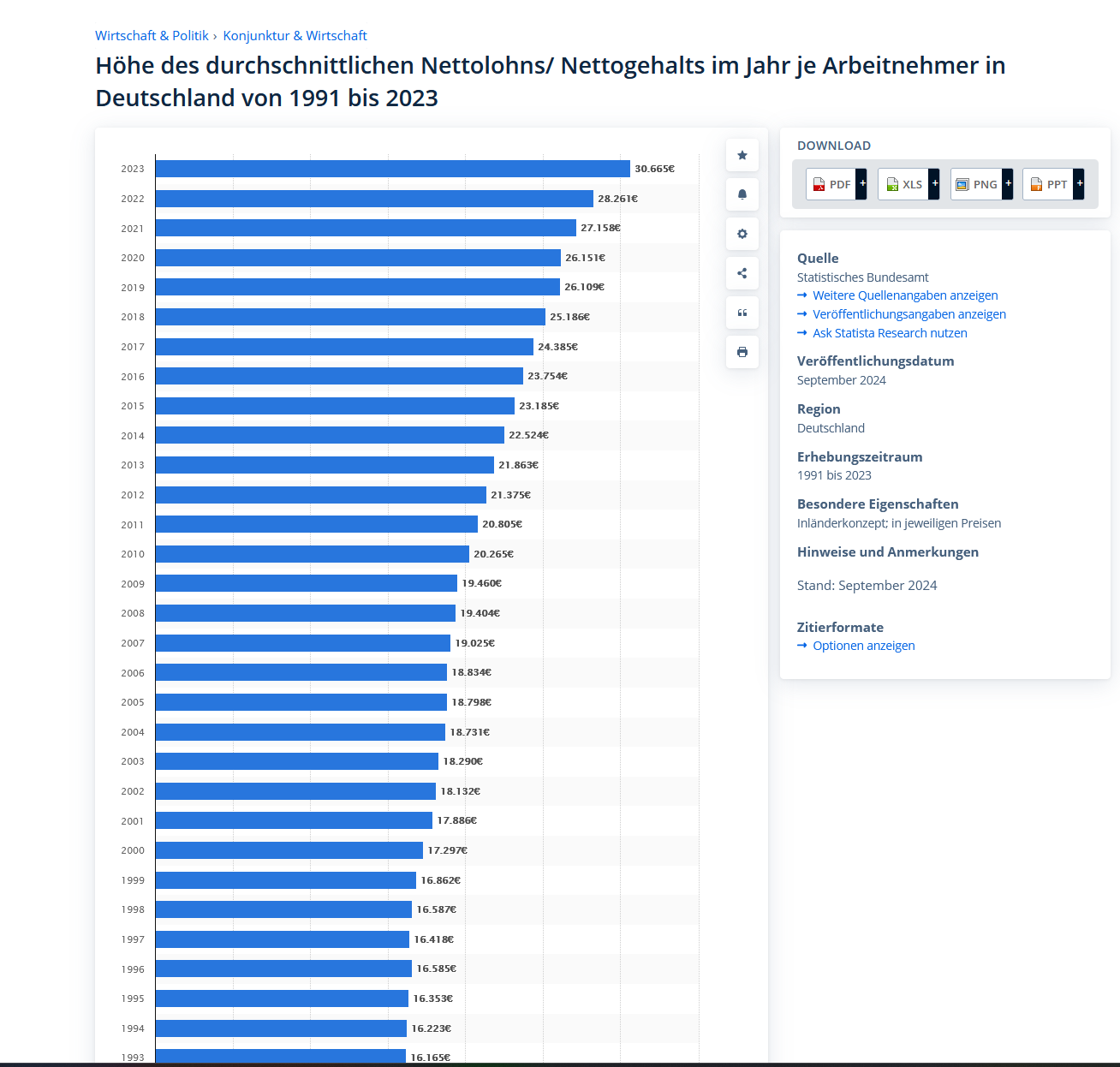 ....dafür alles andere, besonders Nahrungsmittel und Energie sowie Energieträger... und alles was von beiden direkt und indirekt abhängt. Unterm strich kommt man nominal mit "dem selben Geld" heute bei weitem nicht mehr so weit wir 1974.