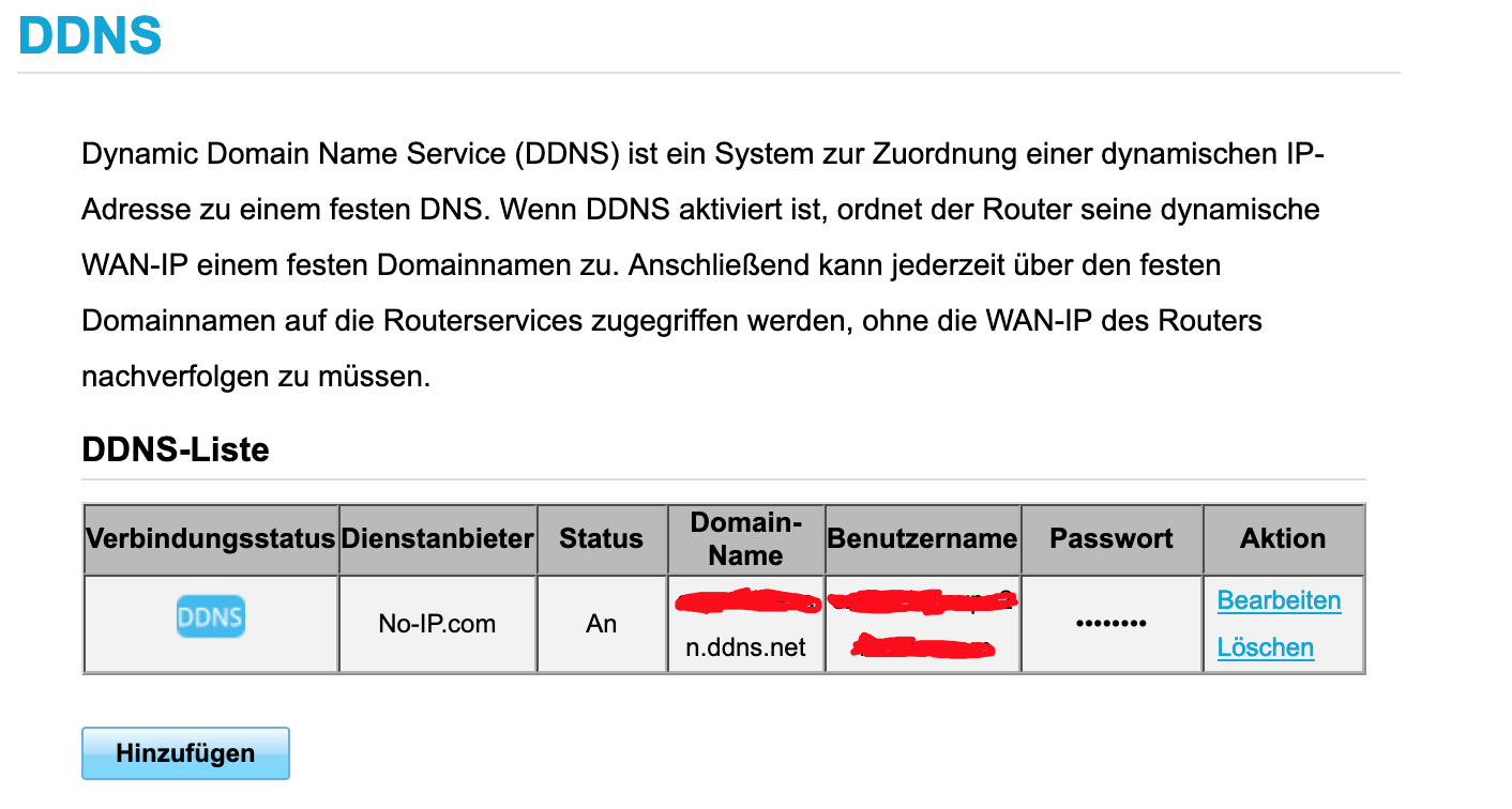DDNS-Adresse bei no-ip geholt und in Router eingetragen - Verbindung zu no-ip ist vorhanden.