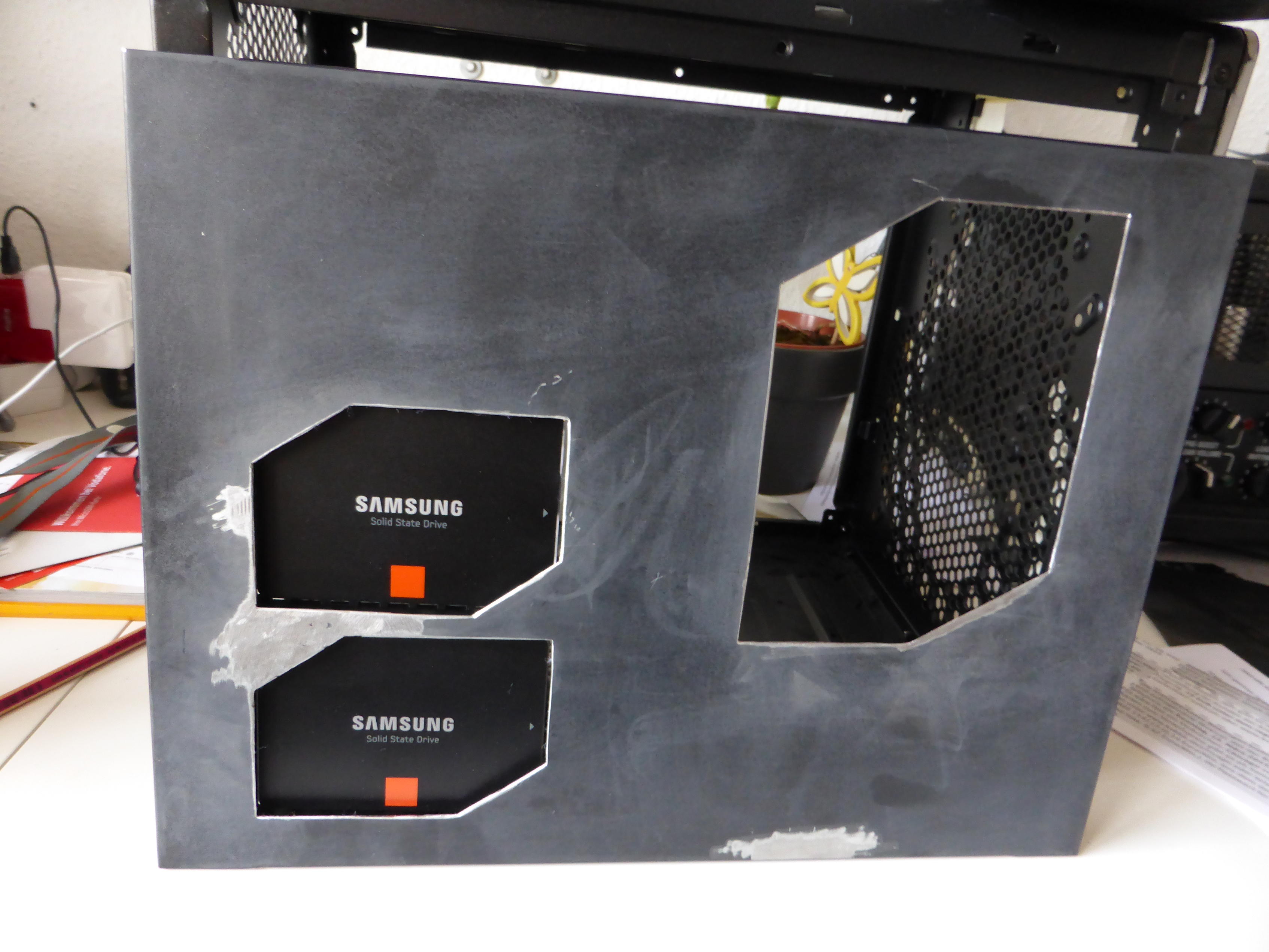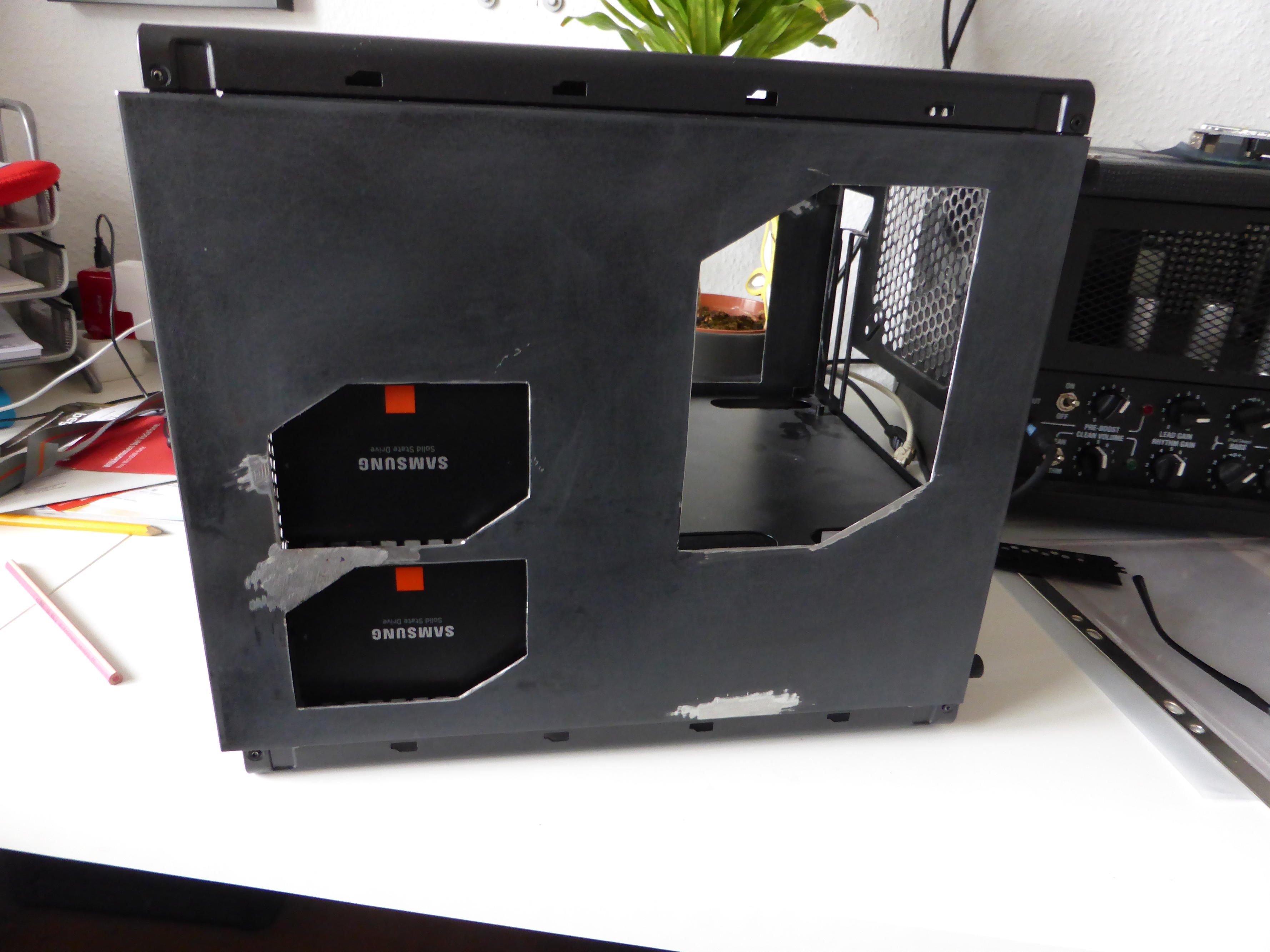 ) Platz ist. Darum, das Frontpanel muss nach Vorne und kleine "Fensterchen" müssen für die freie Sicht auf die SSDs rein.