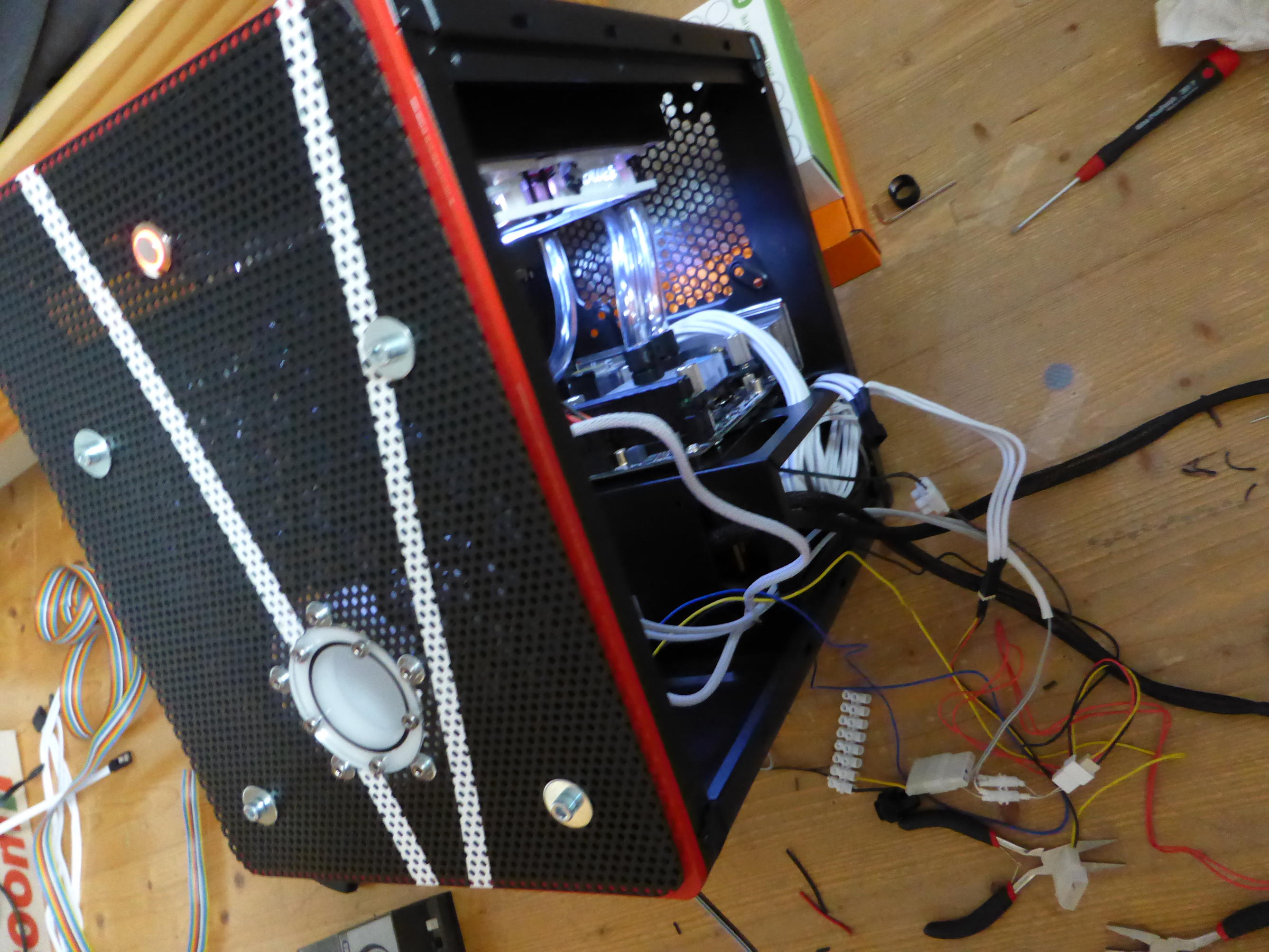 Zum eigentlichen Problem. Der GraKa-Kühler muss runter, und da ich, hauptsächlich aus Design Gründen, auf Wasserkühlungen stehe muss das eine drauf. Im letzten Schritt muss also noch die Frontseite komplett überarbeitet werden.