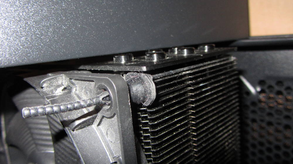 Die Gehäuseseitenwand lies sich zwar schon schliessen, aber nicht ohne den Lüfter noch weiter nach unten zu drücken. Ich denke das ist klar kein akzeptabler Zustand.