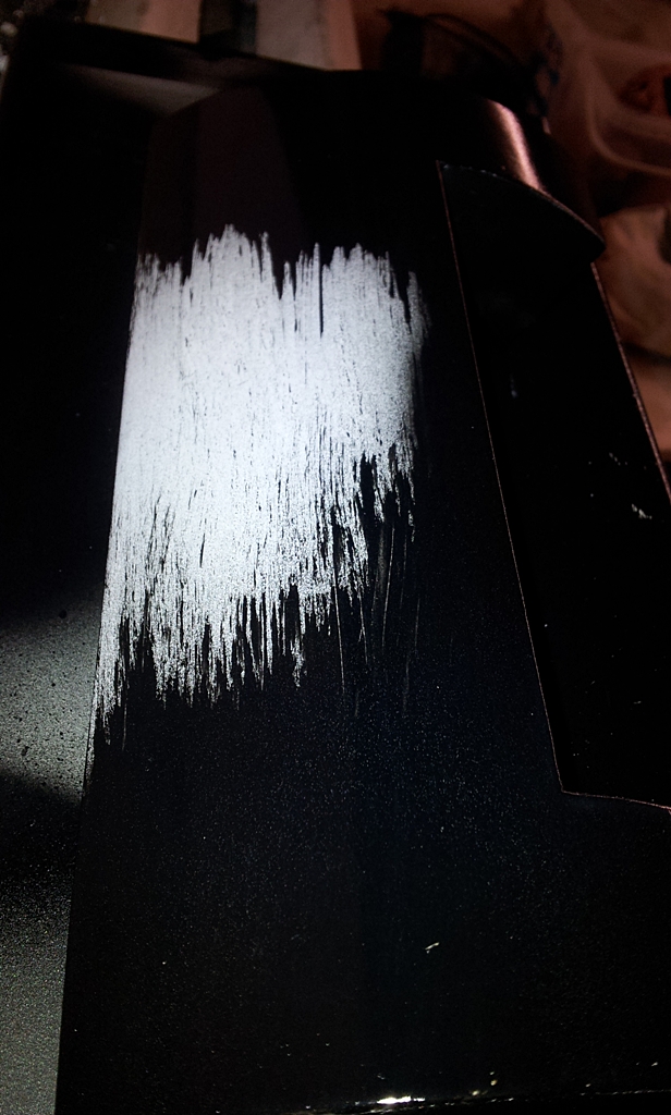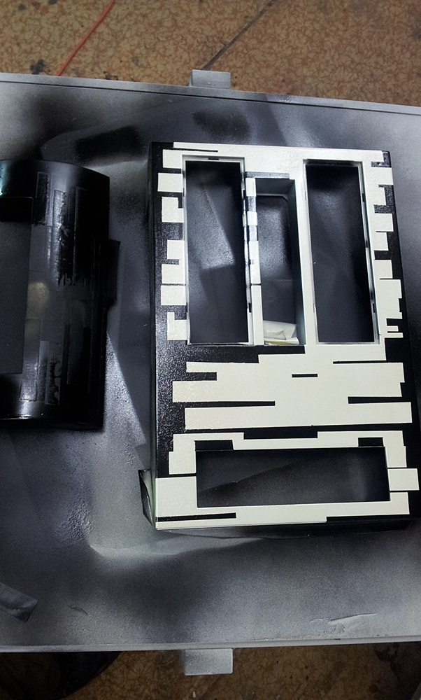 dann wurde es weiß,grund, und weiß gelackt, alles was weiß bleiben sollte wurde dann abgeklebt. Und dann wurde schwarz drübergelackt.