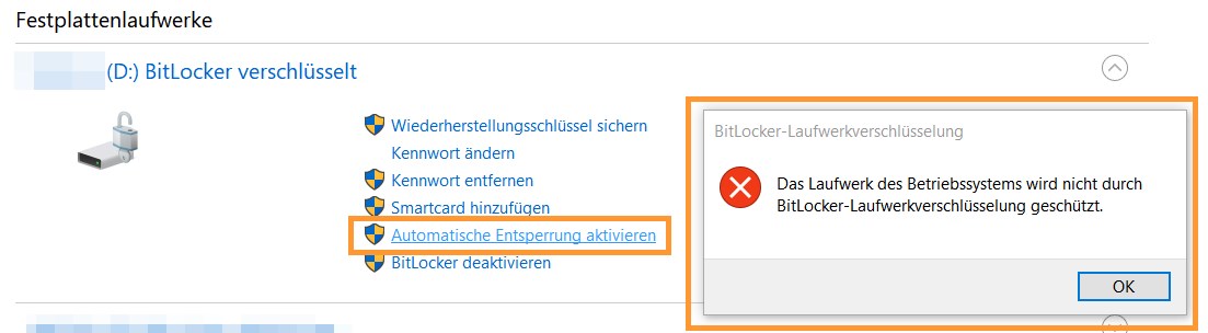 Wie ich weiß, kann man ja nach Eingabe des Passwortes für die per Bitlocker geschützte Festplatte angeben, dass diese automatisch entsperrt werden soll, wenn man sich in Windows einloggt.
