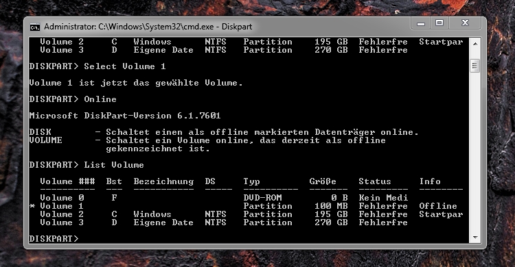 Vorgeschehen: Gestern lief mal wieder die Defragmentierung. Alles lief wie immer. Im Anschluss habe ich mir gedacht, ich mache ein Backup von Partition C (Windows mit MBR und erster Spur). Bei der 100MB Partition, die für das System reserviert ist, ging es nicht mehr weiter( wird vorbereitet). Nach einer 1/2 Stunde brach ich dann ab. Das Programm (Paragon Festplatten Manager) reagierte nicht und ich habe es dann mit Hilfe vom Taskmanager beendet.