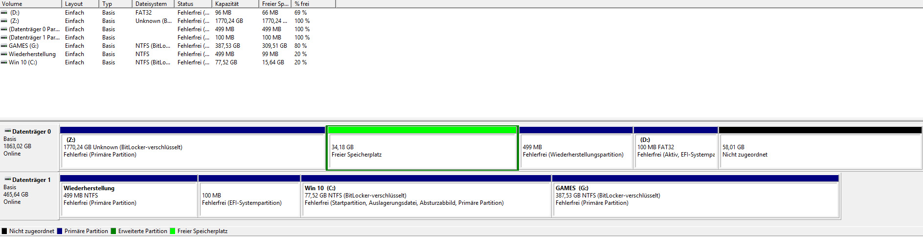 1800GB (Primäre Partition)Bitlocker Verschlüsselt