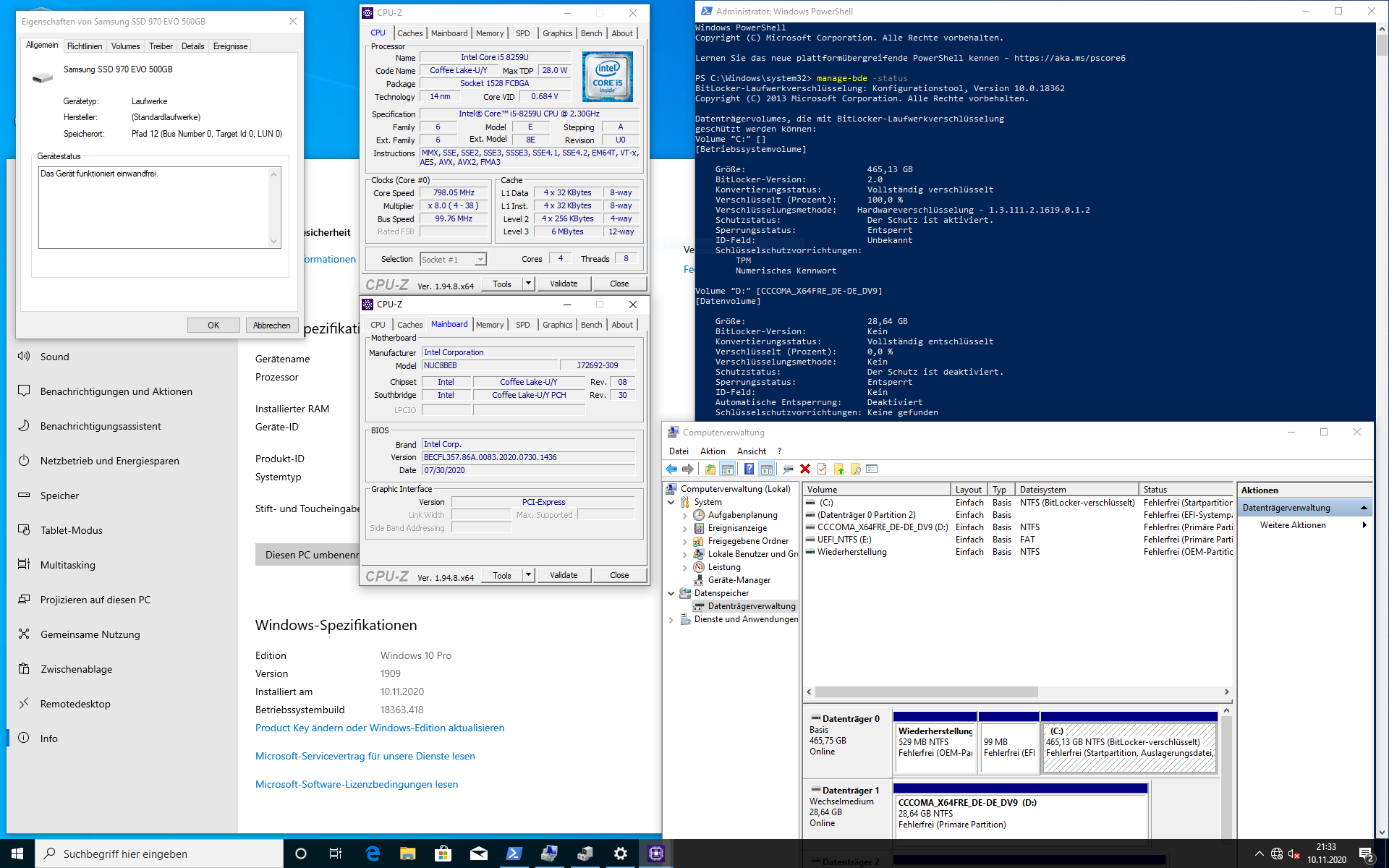 Der Hintergrund meine Frage ist, dass inzwischen ja bekannt ist, dass Win10 Pro 1909 für ein erfolgreiches aktivieren von eDrive benötigt wird, genauer gesagt das Build 18363.418 (zu sehen auf Screenshots von z.B. Aranea und Hummerman)