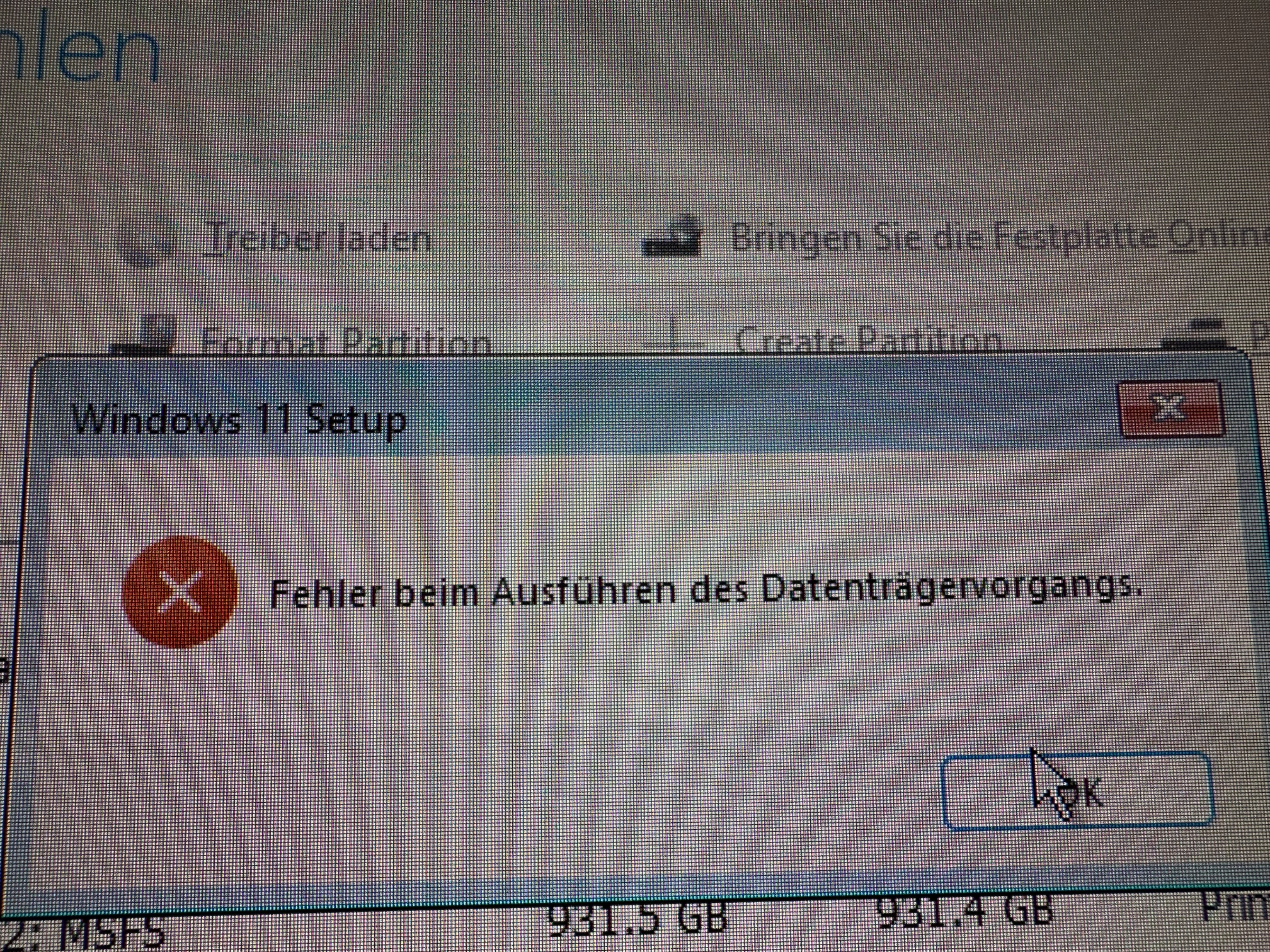 Während der Windowsinstallation gab es dann die ersten Probleme, nachdem ich auf meiner Hauptplatte die dort angelegten Partitionen gelöscht hatte und neu aufsetzen wollte, denn dort kamm zu Beginn auch eine Bitlockermeldung welche aus wlechem Grund auch imemr meinen Wiederherstellungskey aus dem Passwortmanager nicht akzeptieren wollte.