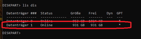 Auch mit dem Diskpartbefehl hats mittlerweile geklappt. Es bleibt aber aktuell noch beim Fehler beim Ausführen des Datenträgervorgangs. Irgendwelche Ideen? Will das Ding ungern aus dem PC ausbauen und auf nen USB Adapter packen um an einem anderen Befehl mit Magician drüberzugehen…