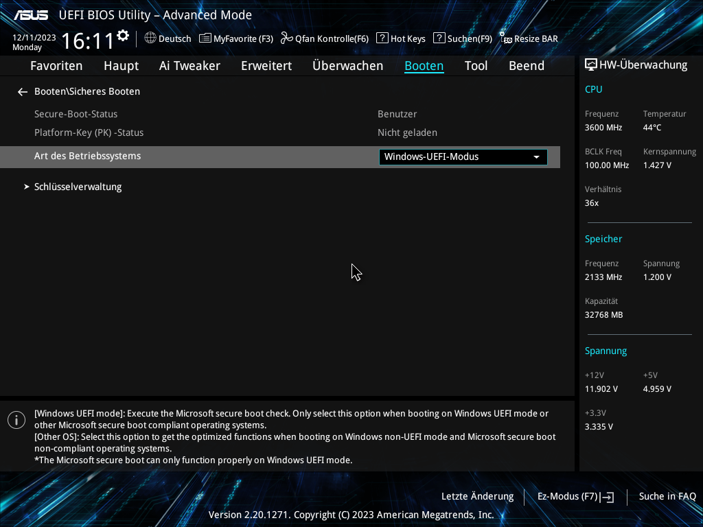 ich habe heute ein BIOS-Update von meinem Mainboard ASUS ROG Strix B650E-E Gaming Wifi über die Flashback-Funktion gemacht. Ich verwende Bitlocker und habe den Wiederherstellungsschlüssel extra gesichert.