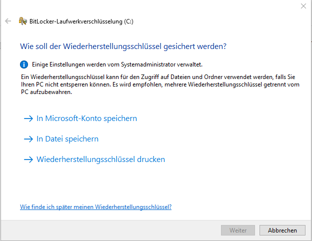 Ich würde dir dazu raten dir Mal die Powershell für den Fall anzusehen. Dort kann man dann nämlich auch noch den Algorithmus wählen (die GUI macht nur AES-XTS 128, was eigentlich ausreichend ist, aber per PS geht eben auch AES-XTS 256).
