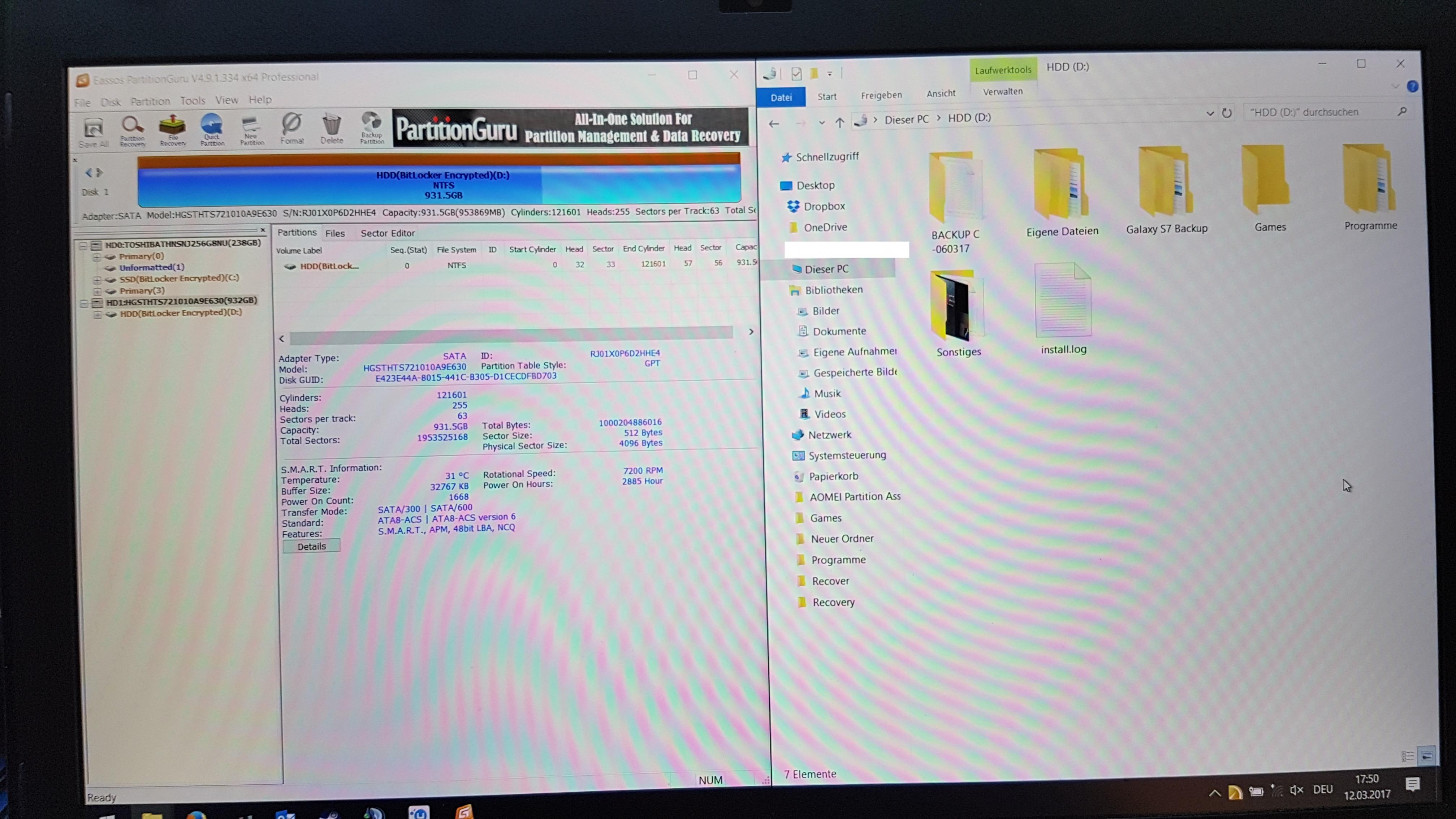 Problematisch ist, dass die Festplatte mit Bitlocker geschützt ist.