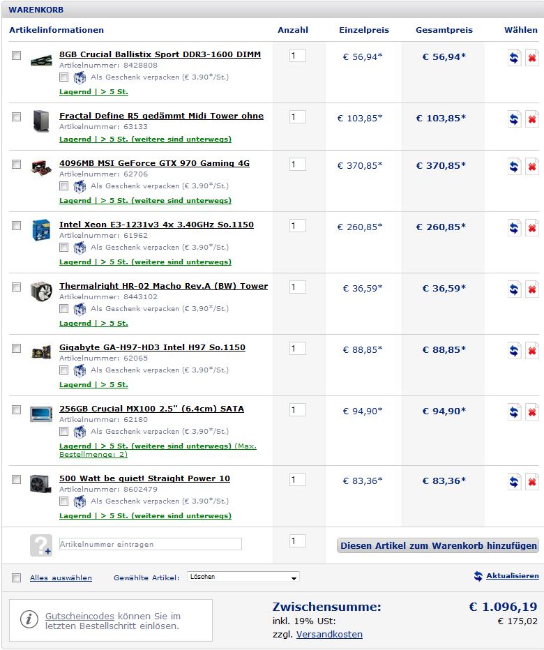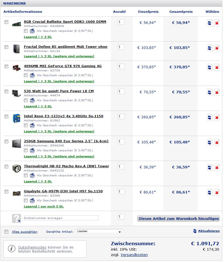 Bitte einmal prüfen (Gaming PC für ~1100euro)