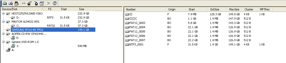 Dabei handelt es sich um eine 149gb Platte, auf der nur eine Partition(NTFS) war.