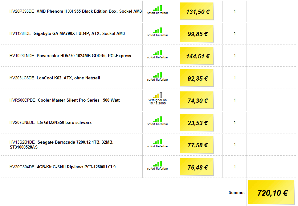 ich hab mir einen Gamerpc zusammengestellt ( hardwareversand.de ) den ich mir zu Weihnachten kaufen will. er kostet momentan 829 Euro und man sollte aktuelle Spiele damit Flüssig auf hoher Stufe zocken können, natürlich auch office und alles mögliche eben. Jetzt hab ich das Problem das ich mich nicht gut mit Hardware auskenne weil das mein erster zusammengestellter Pc ist. Es wär Nett wenn ihr alle KOmponenten ansehen könntet und mir vielleicht andere bauteile vorschlangen Könntet mit denen ihr gute Erfahrungen habt. besonders bei der Grafikkarte,denn da hab ich komplett kp was da gut ist und was nicht. wie gesagt sollte sie für aktuelle spiele herhalten. Maximal will ich 1000Euro ausgeben.