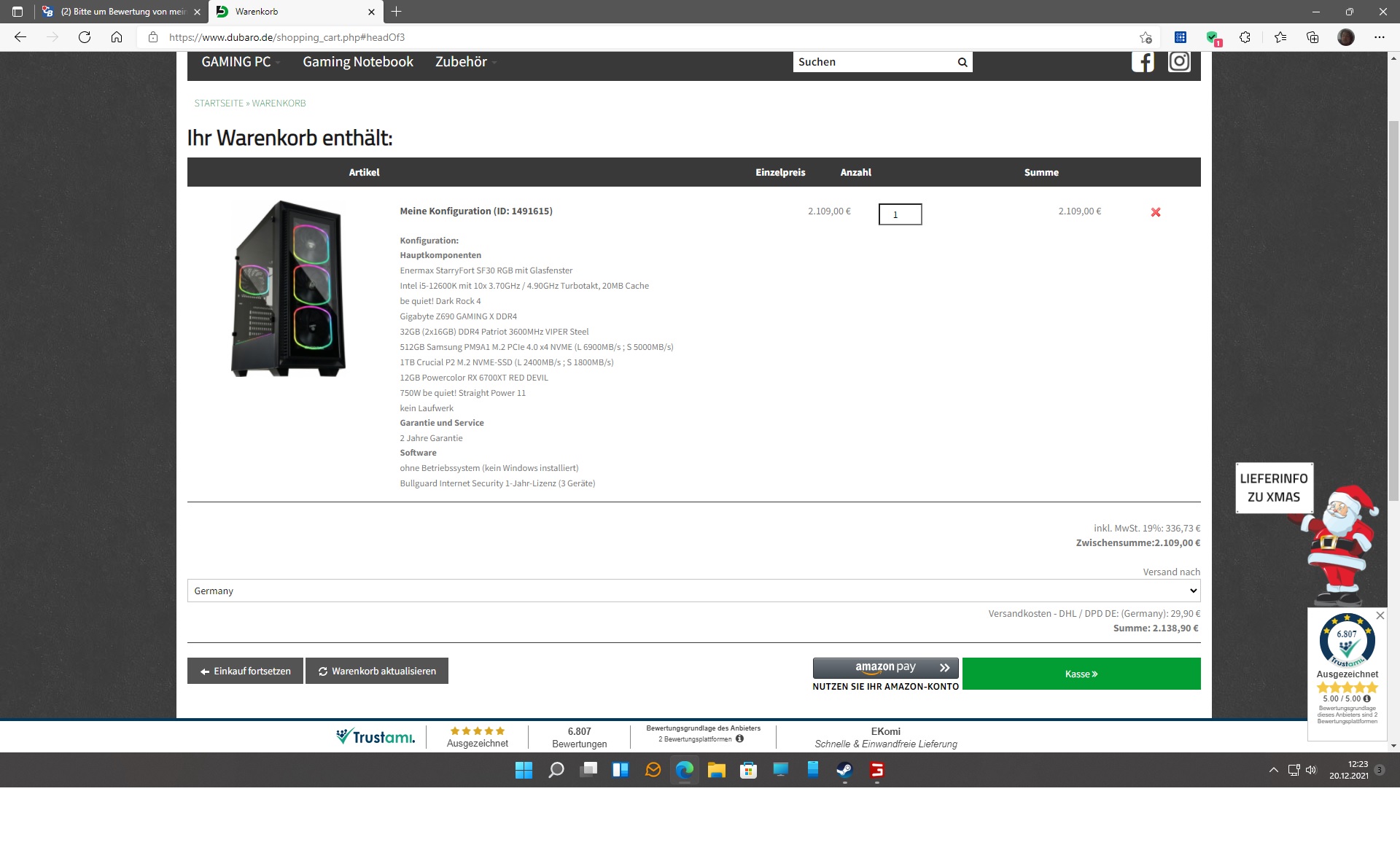 Stimmt, ist aber bei den Preisen für die Komponenten meist wesentlich günstiger als Alternate. Ob man damit an die o.g. Konfiguration von Dubaro rankommt, würde ich aber bezweifeln.DigitalBlizzard schrieb:MF nimmt auch ordentlich Kohle für den Zusammenbau, 150€ genau wie Alternate