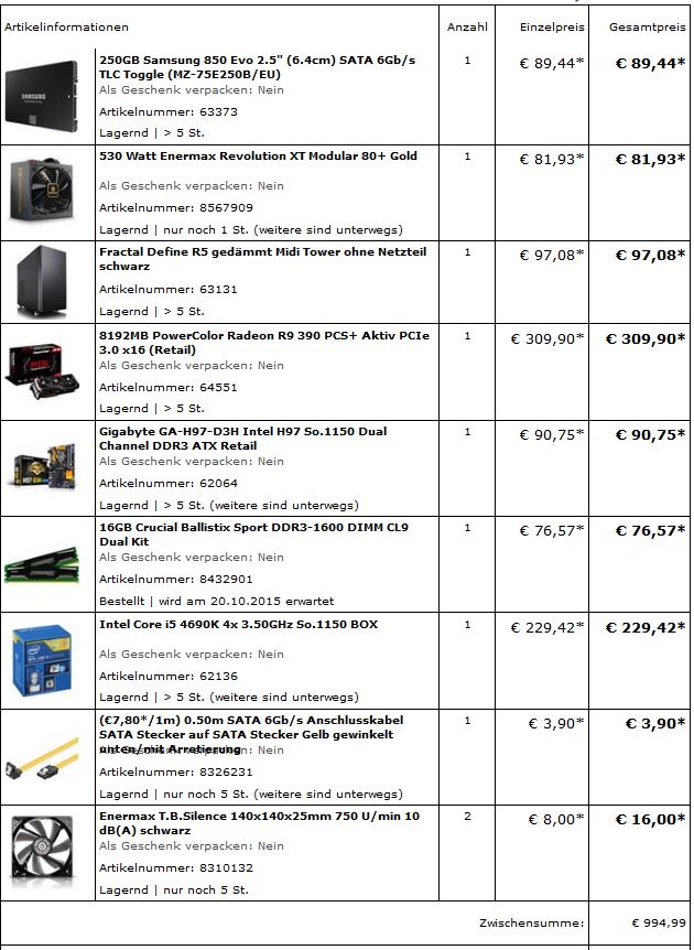 bei mir ist es mal wieder an der Zeit einen neuen Rechenknecht anzuschaffen und da ich inden letzten Jahren die Entwicklungen in Sachen Hardware nicht mehr wirklich verfolgt habe, möchte ich Euch an dieser Stelle um Rat zu meiner Zusammenstellung bitten.