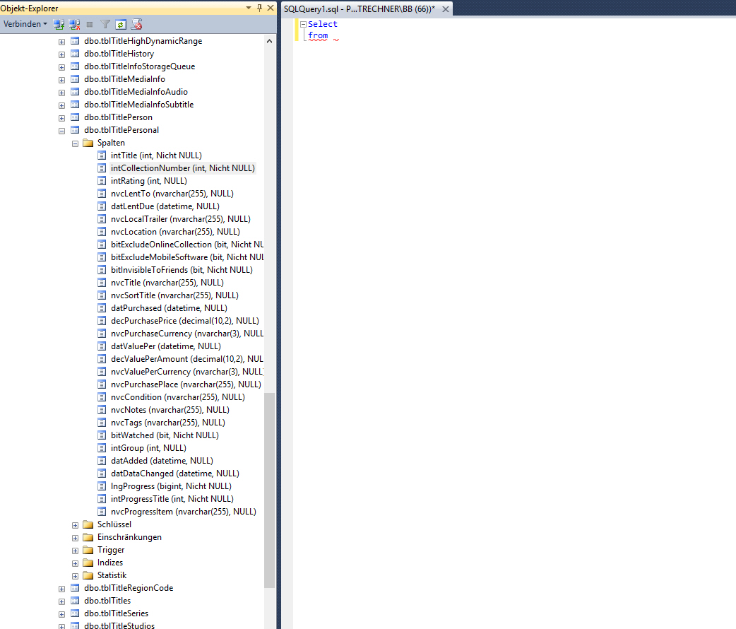 Kann mir kurz wer sagen, wie die Select und From abfrage heißen muss?