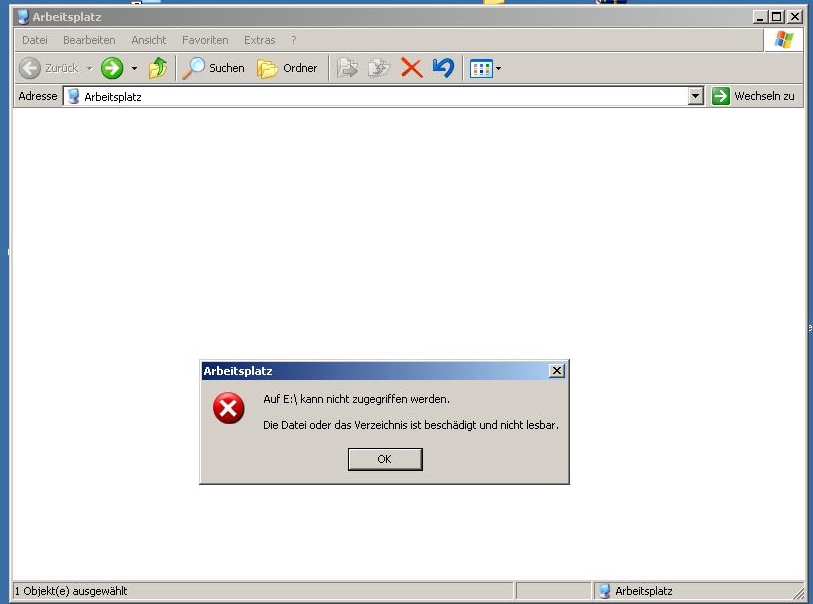chkdsk Laufwerk: /r über Start / Ausführen / cmd probieren.