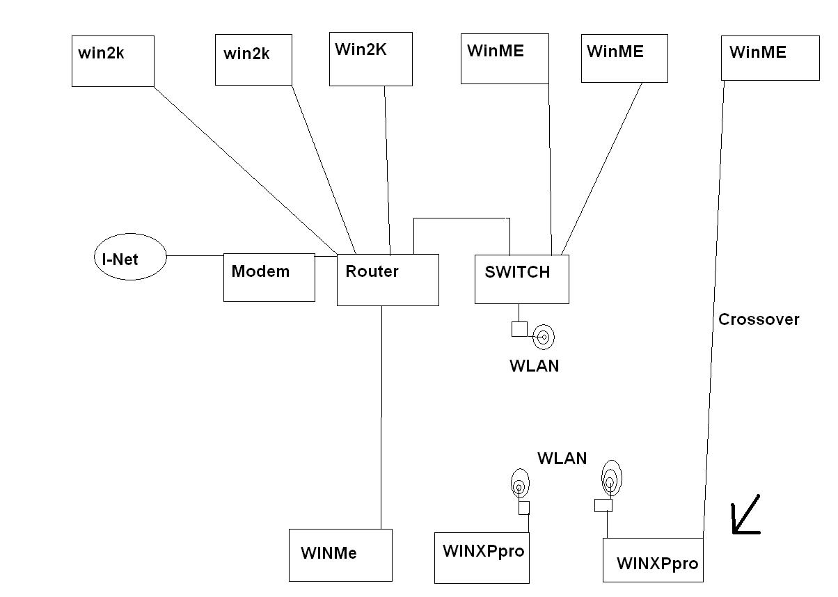 Guten Abend, ich habe hier eine Skizze wo WinME mit WinXP Pro über Wlan verbunden werden soll, sprich es soll ermöglicht werden mit winME über winXp ins netz zu kommen.