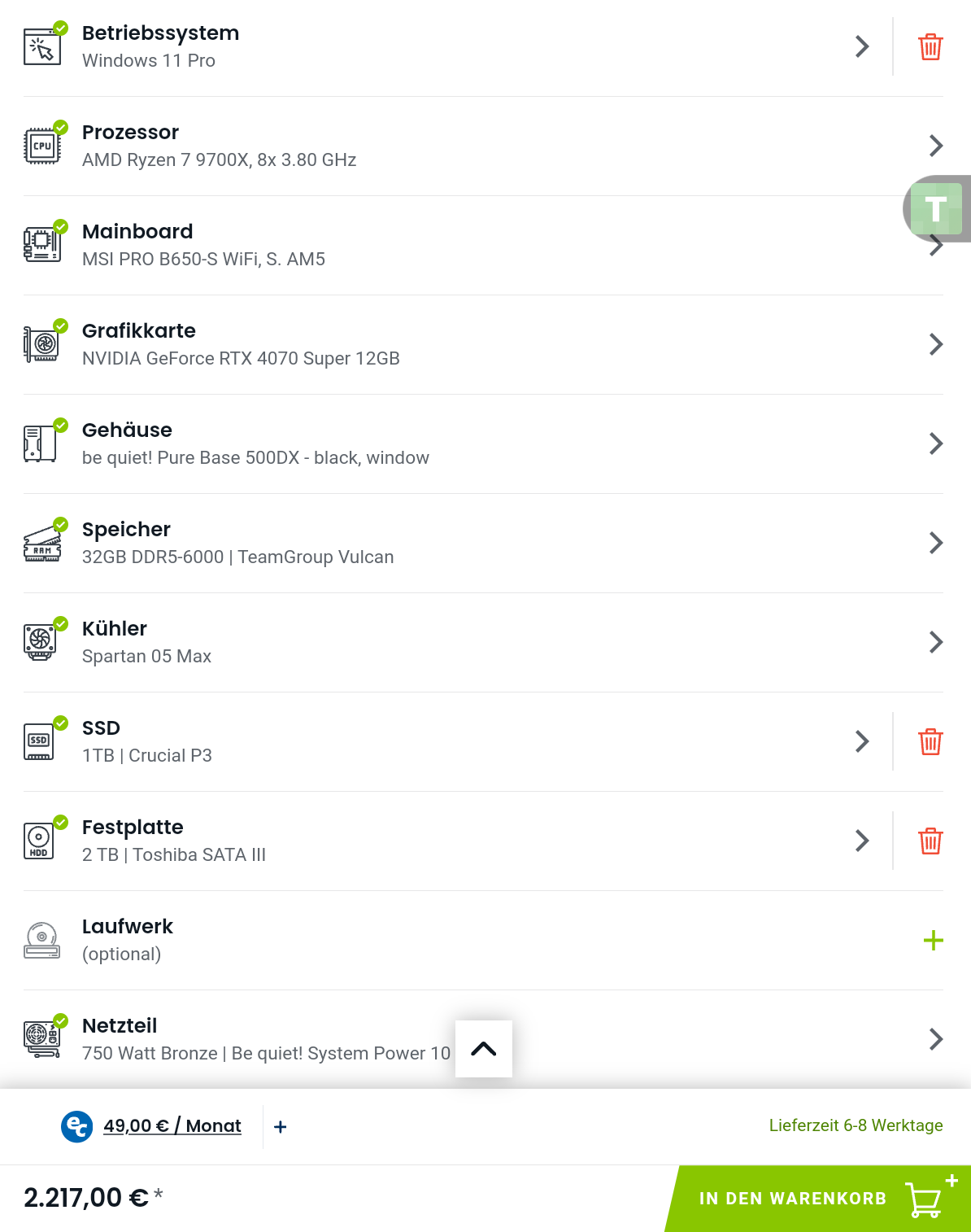 MB auch das Billigste vom Billigen Gehäuse wäre auch nicht meine erste Wahl, SSD auch nur 1TB.