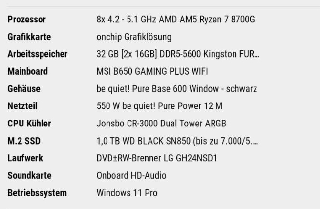 Aber wie gesagt, die Möglichkeit habe ich ja mit dem 8700g und
