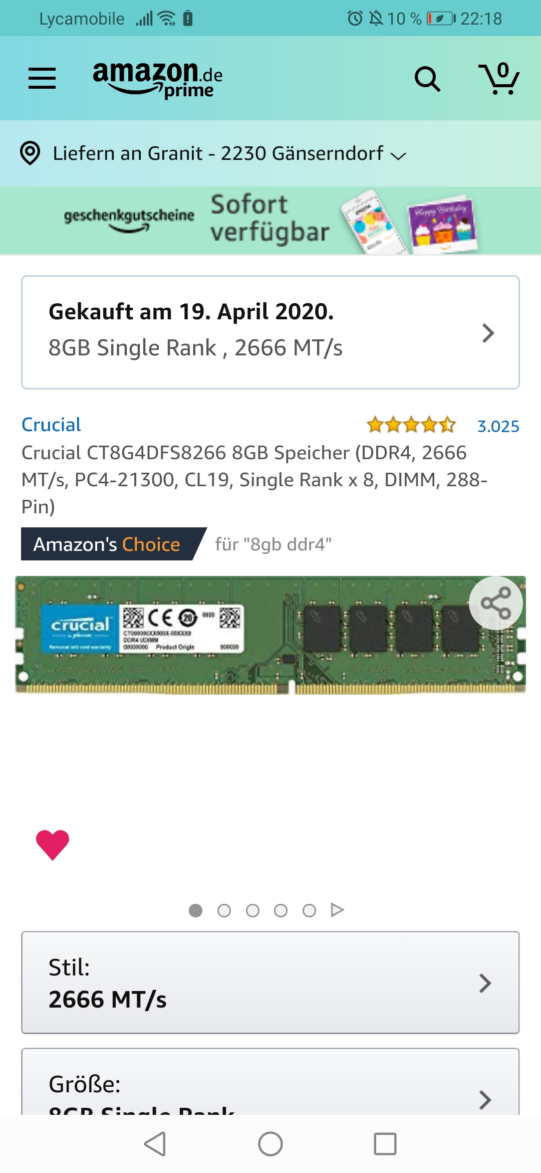 1 x 8GB DDR4 RAM kommen diese Woche vom Amazon... Hoffe der wird passen aufs Mainbiard (siehe Foto)