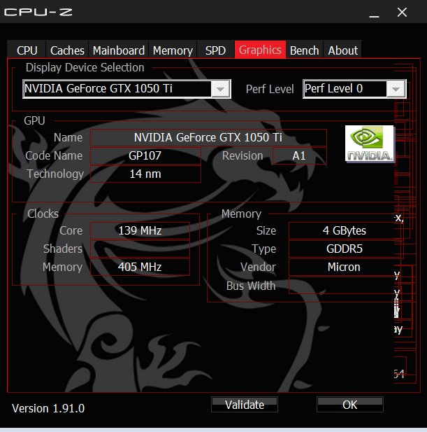 GPU: Geforce GTX 1050ti, 4GB VRAM