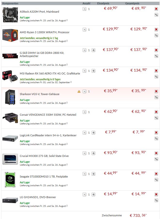 ich habe einen PC im passenden Budget bei Alternate mit deren PC-Konfigurator erstellt (siehe Anhang), hauptsächlich basierenden bzw. orientierend an den sehr bekannten Forumseintrag "der ideale Gaming-PC".
