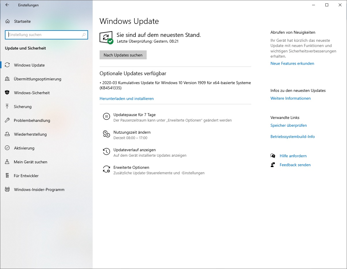 Wer einfach nur Windows Update machen lässt hat jetzt den Stand vom 12. März 2020, siehe wie folgt: