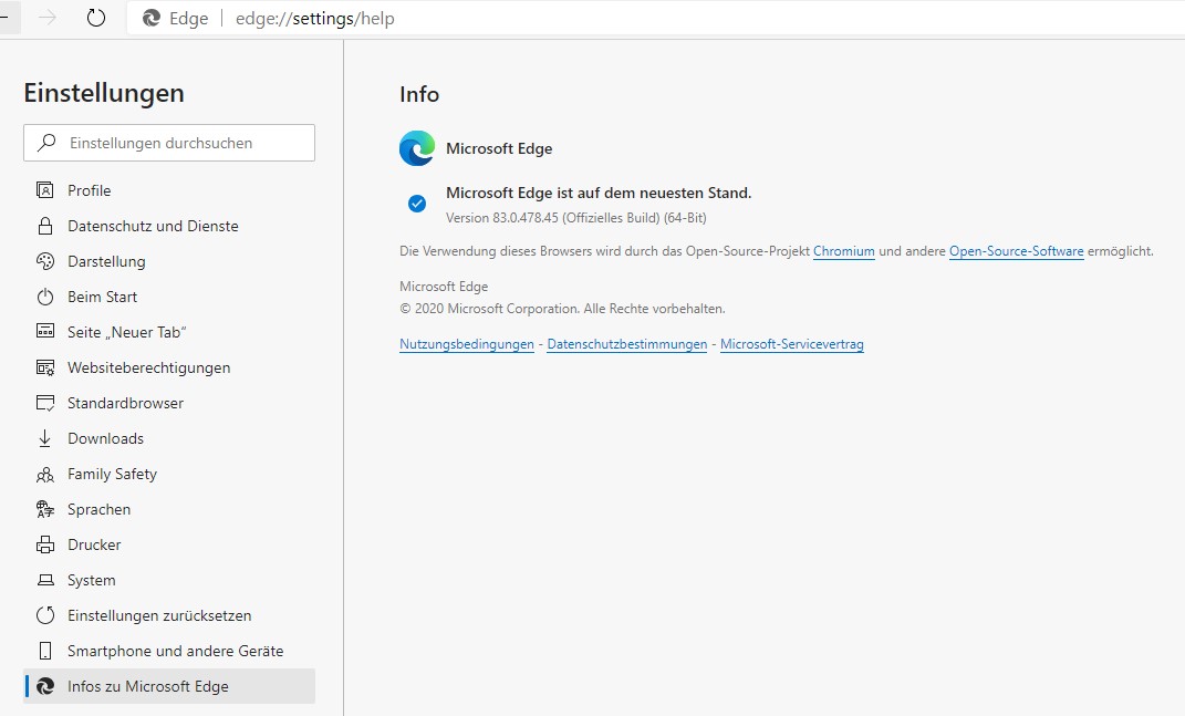 Und im neuen Edge in den Einstellungen siehst dann auch, ob du auf den aktuellsten Stand bist oder nicht