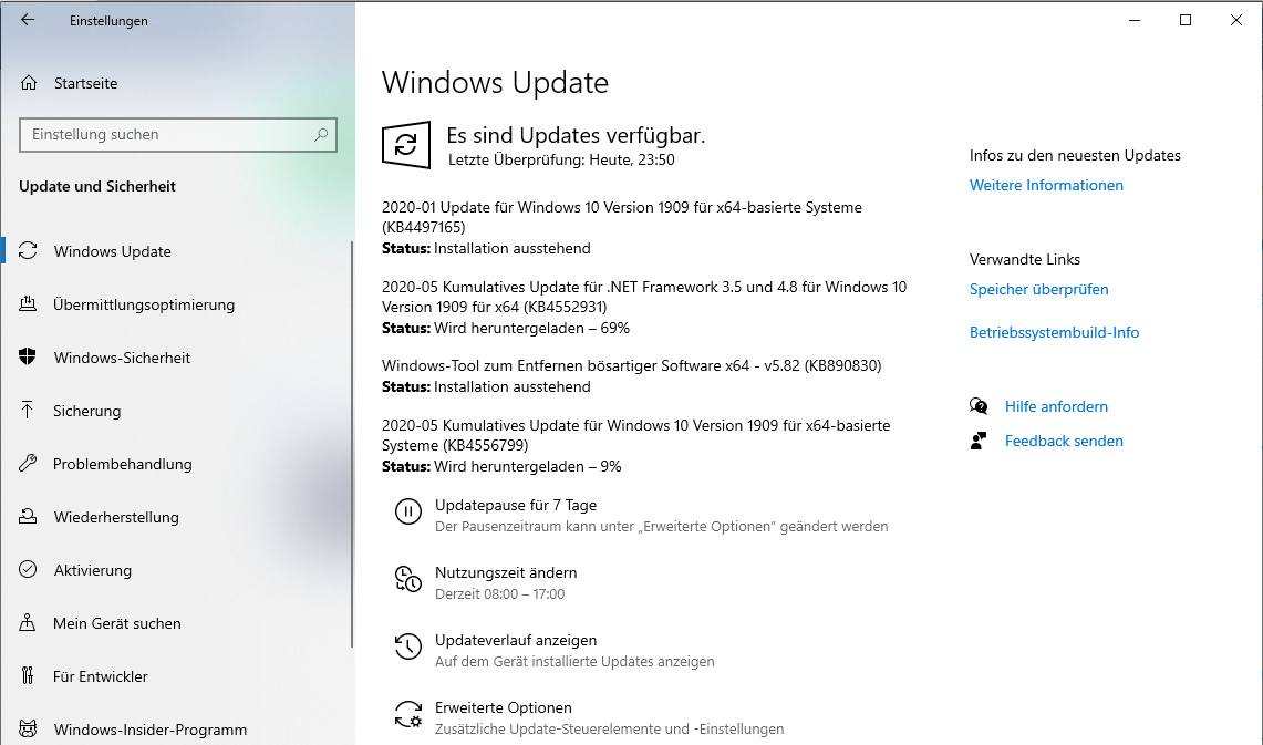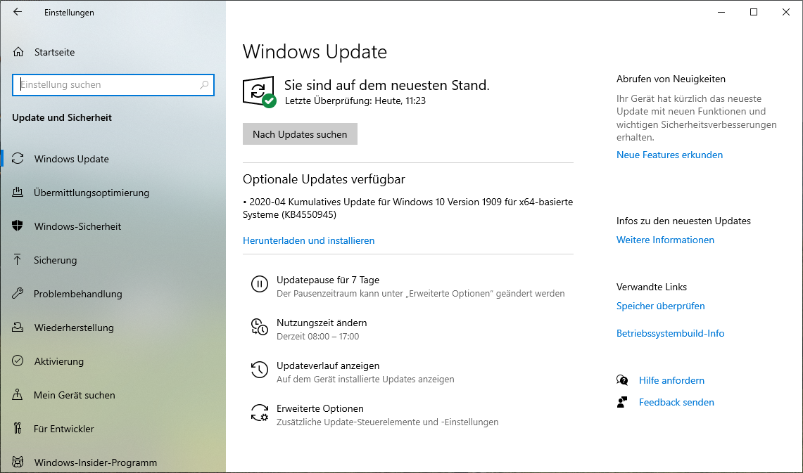 Das optionale Update KB4550945 lasse ich jetzt einfach mal vorerst bzw. für die nächsten Tage mal weg.
