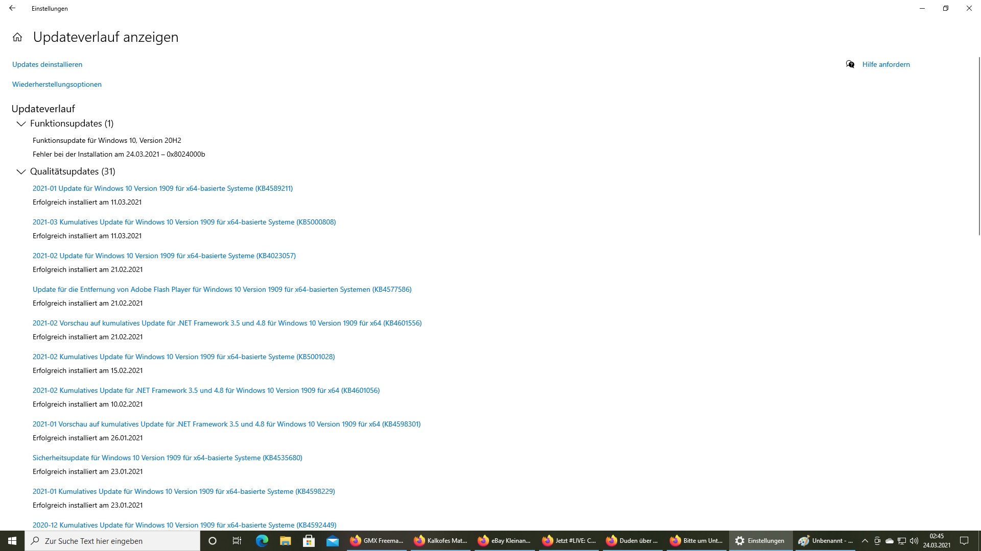 kann es auch nicht, da du ja noch auf der alten 1909 Win10 Version bist, aktuell wäre ja 20H2.Travis schrieb:Ein KB5000802 (der offenbar für diese Probleme verantwortlich ist) wurde mir bislang allerdings (noch) nicht angeboten