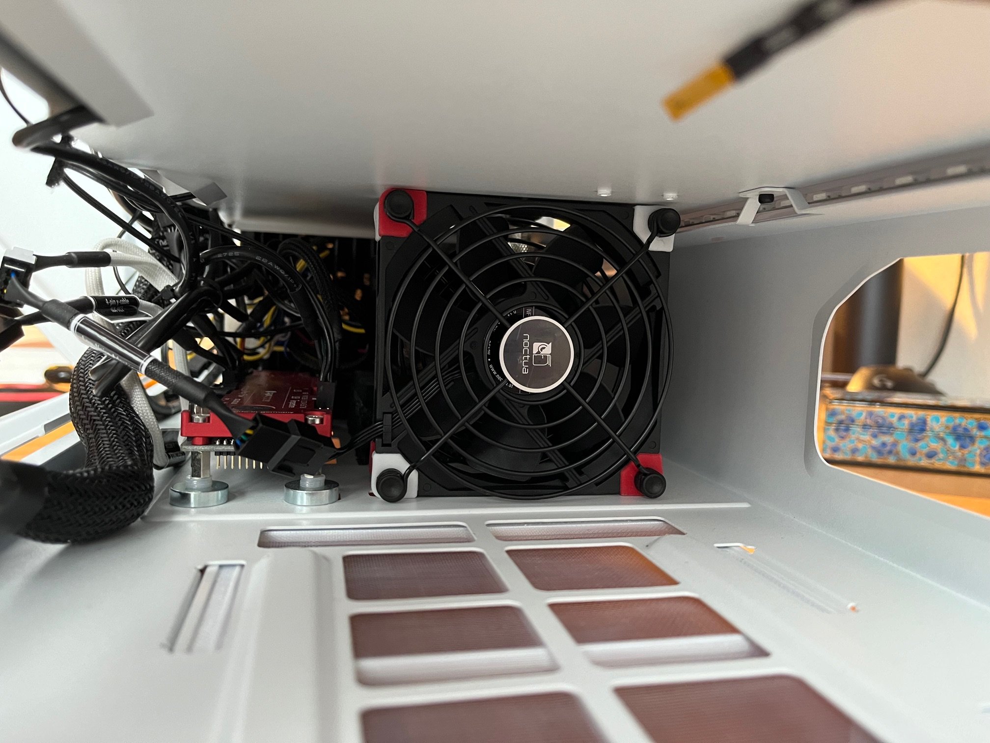 Da ich beim Einbauen des vorderen Radiators zwei Lüfter beschädigt habe und die Laufruhe dahin war, habe ich diese natürlich durch neue Noctua Lüfter in Schwarz ersetzt, einmal schwarz, immer schwarz