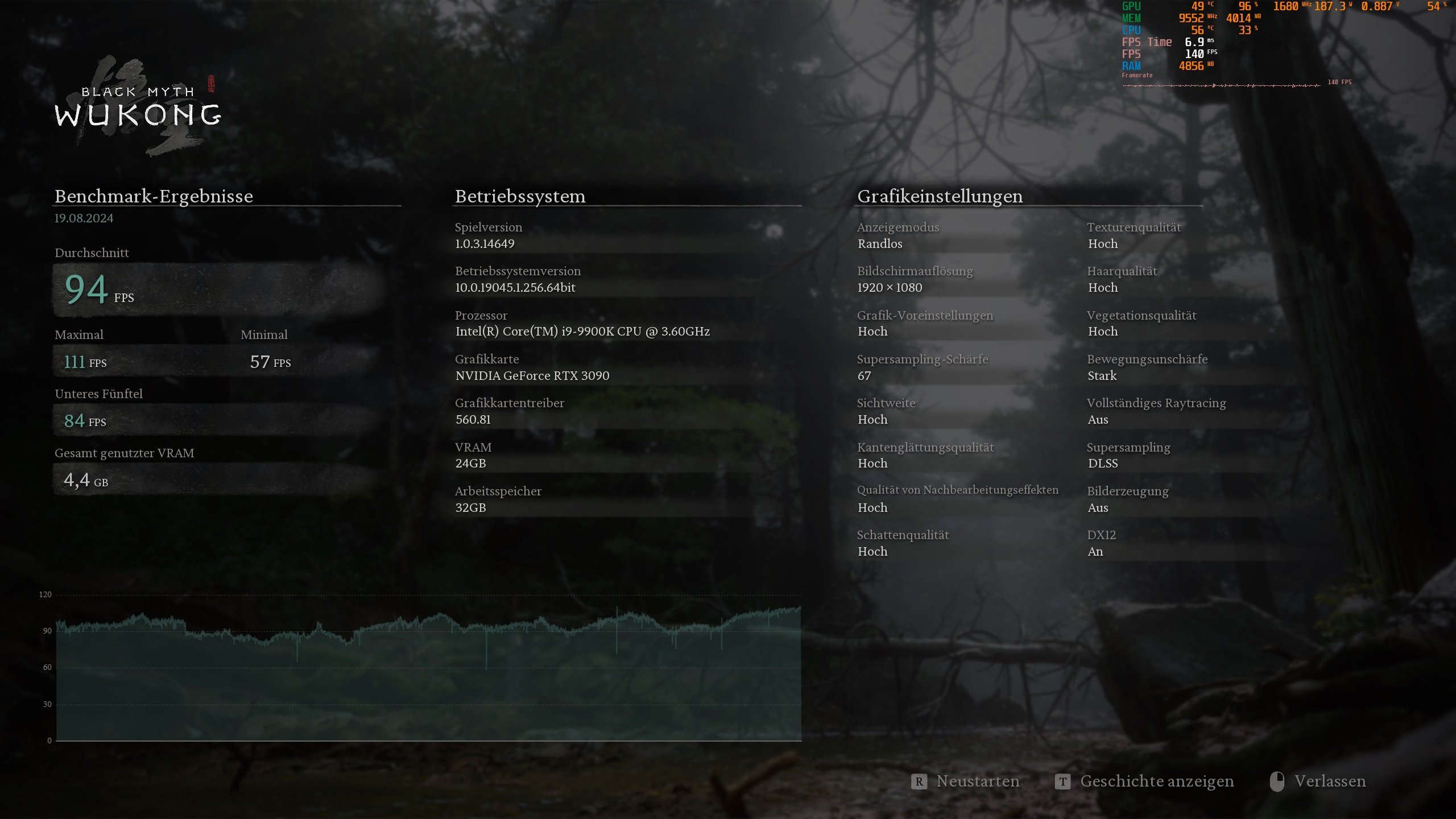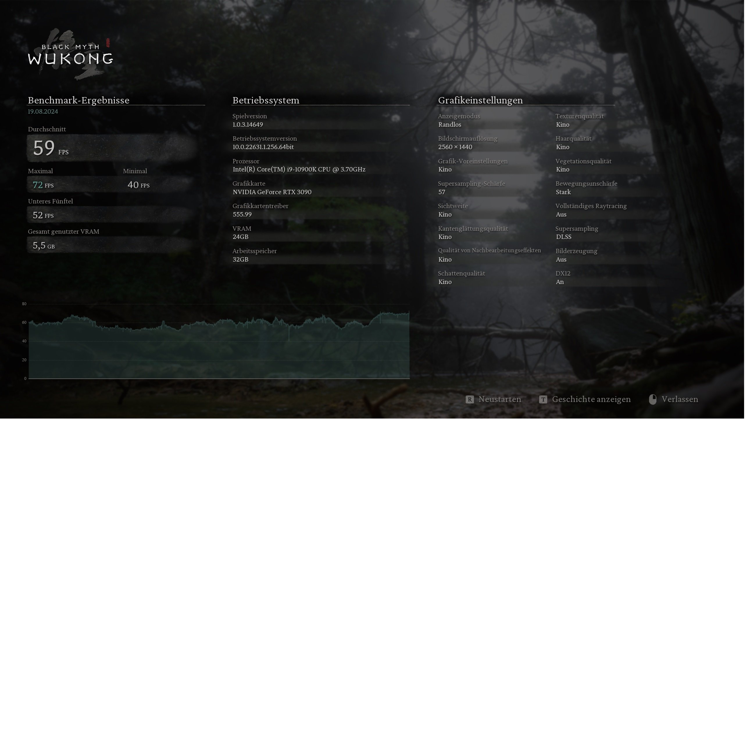 Black Myth: Wukong – 1.920 × 1.080, „Hoch“, Upscaling 67: 60