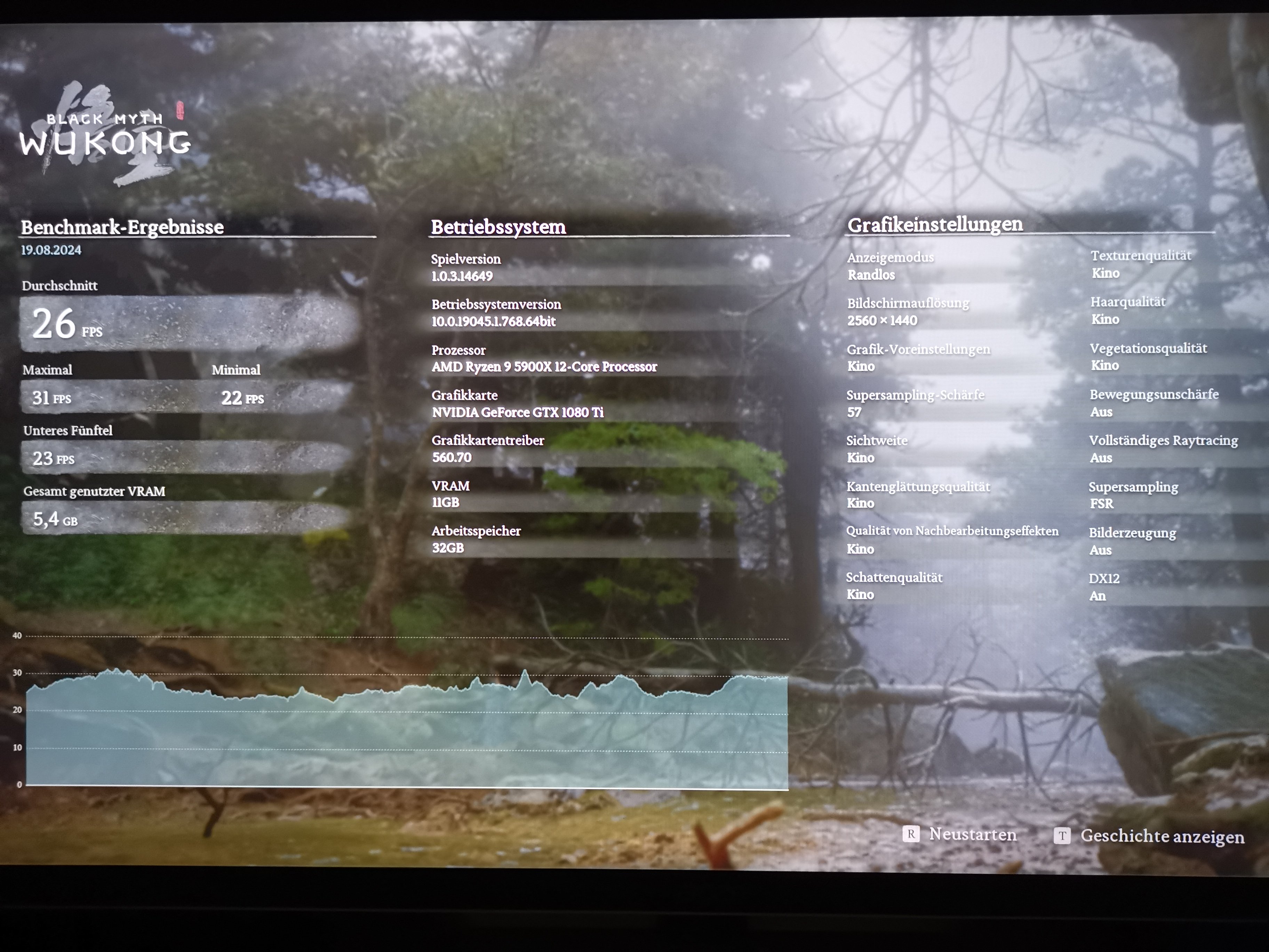 Black Myth: Wukong – 1.920 × 1.080, „Hoch“, Upscaling 67: 44